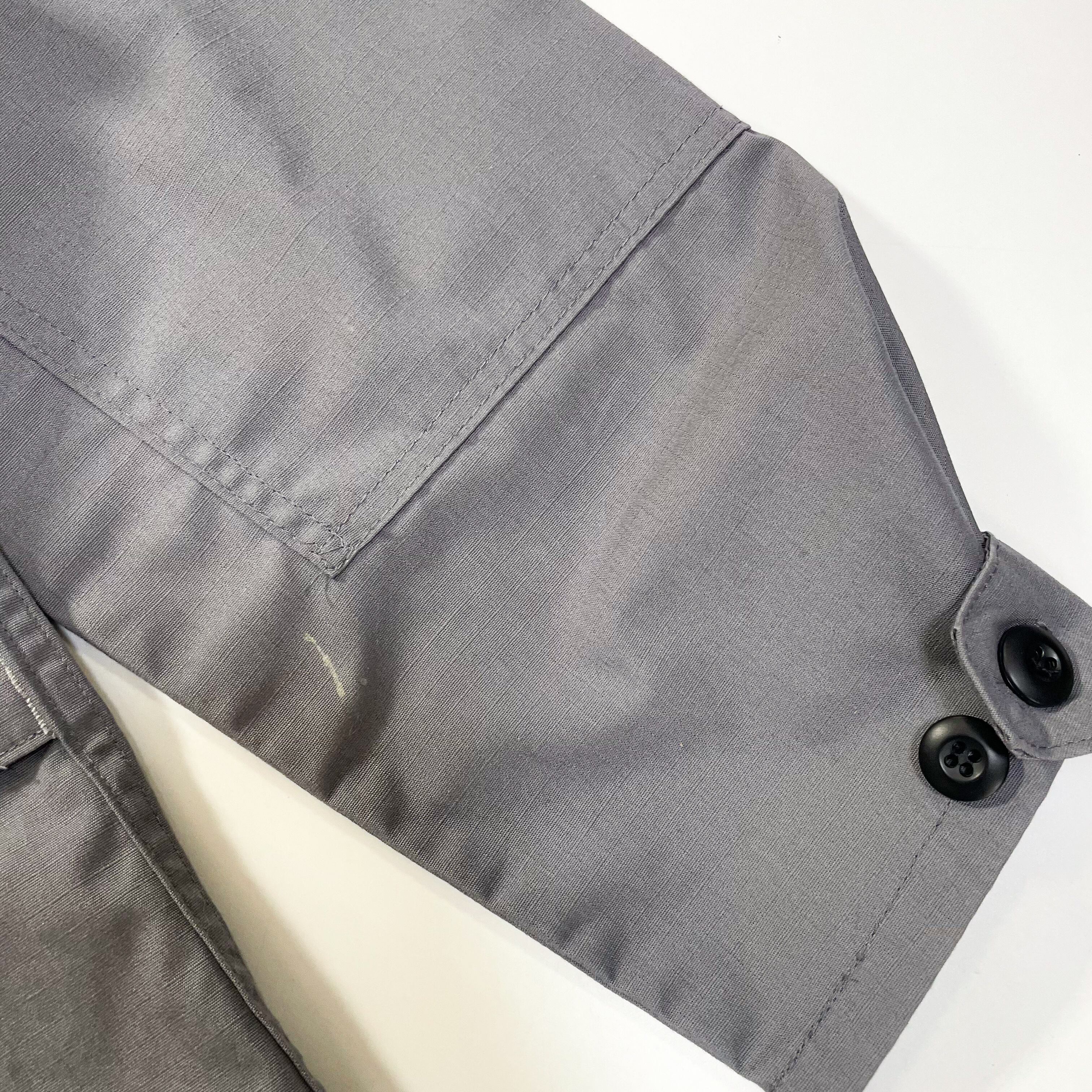 1990s " Brigade Quartermasters " gray cotton poly ripstop BDU jacket . made in usa . size medium .