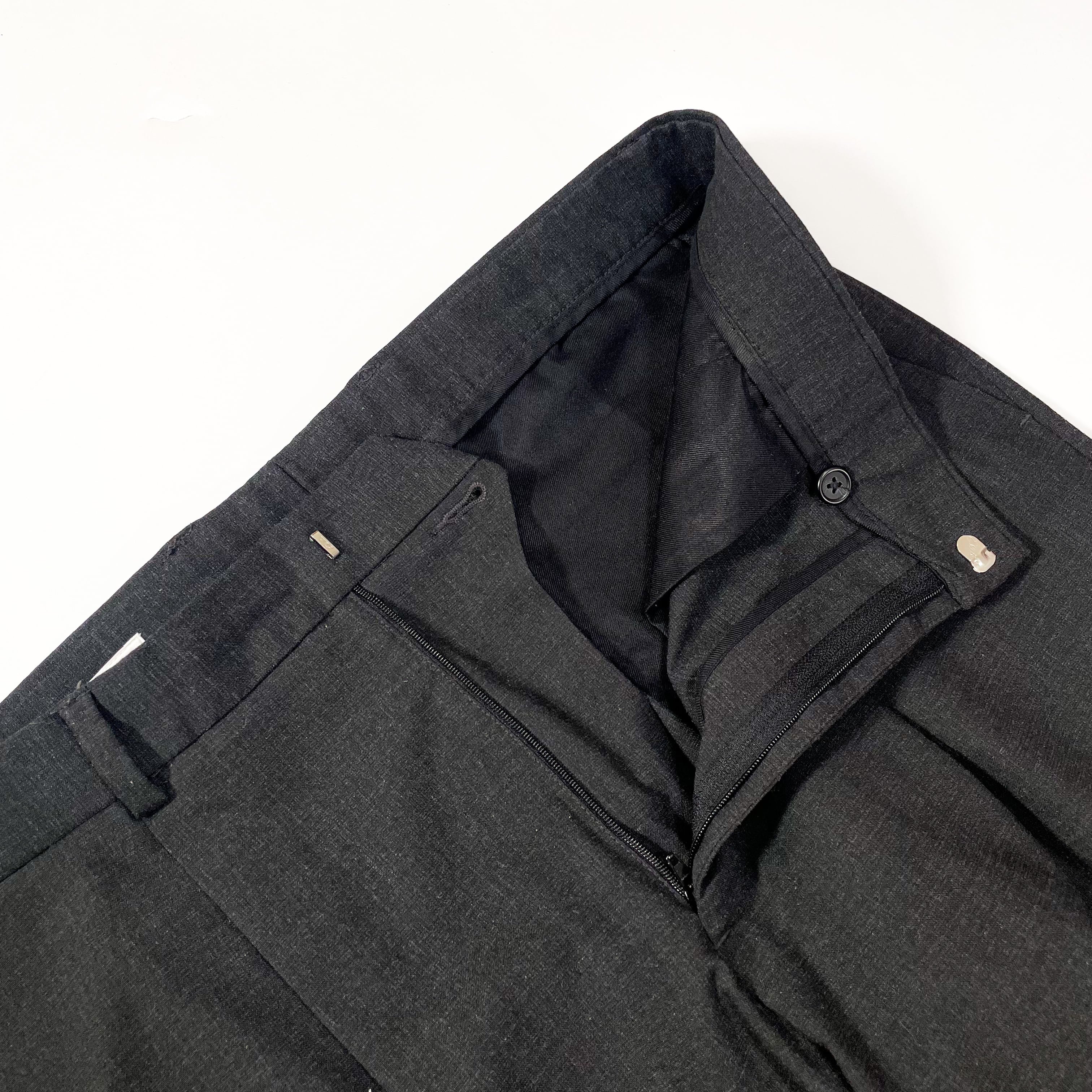 1980s " Perry ellis " dark gray rayon one tuck slacks . size 34×30.