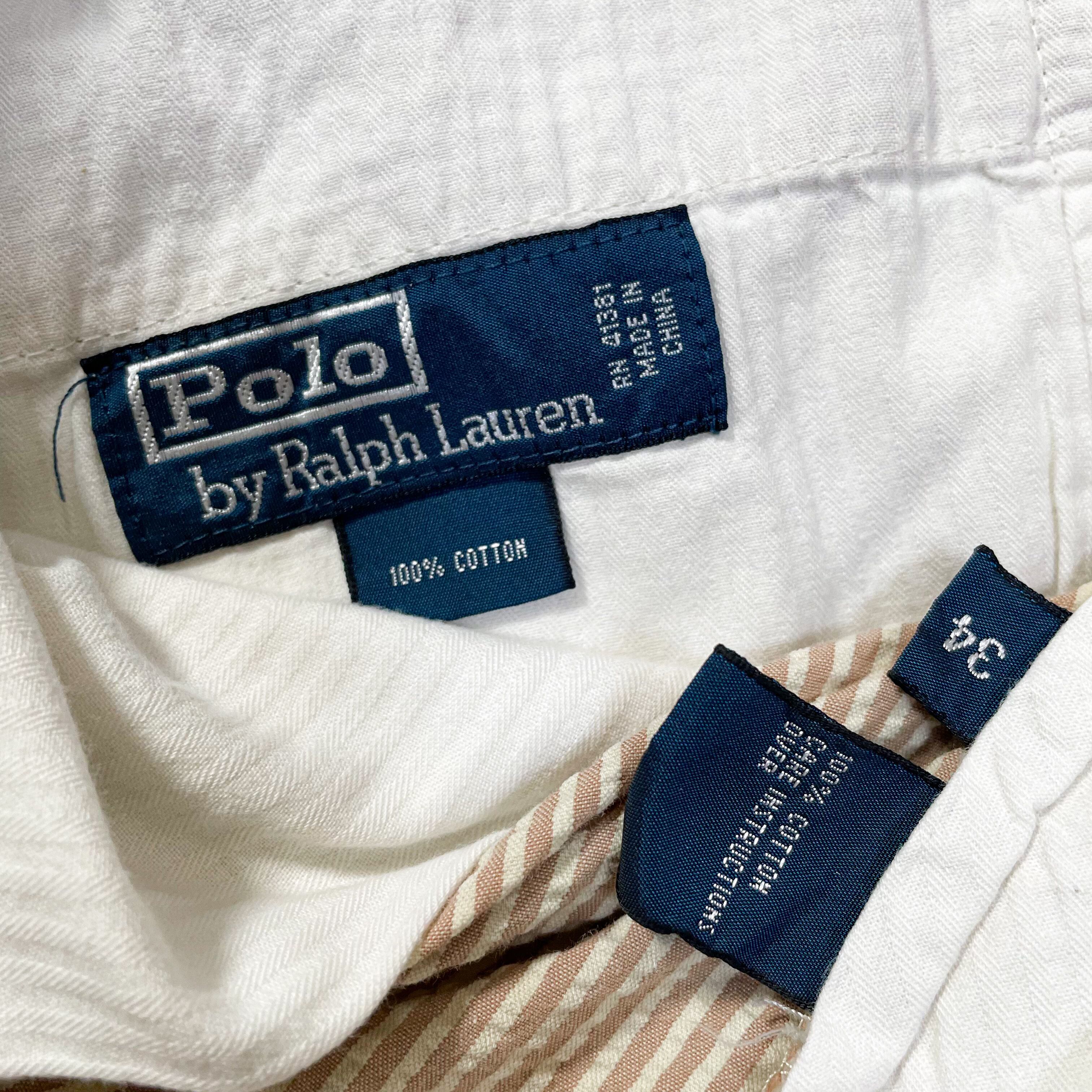 1990s " Polo Ralph Lauren / light moca brown cotton seersucker shorts . size 34.