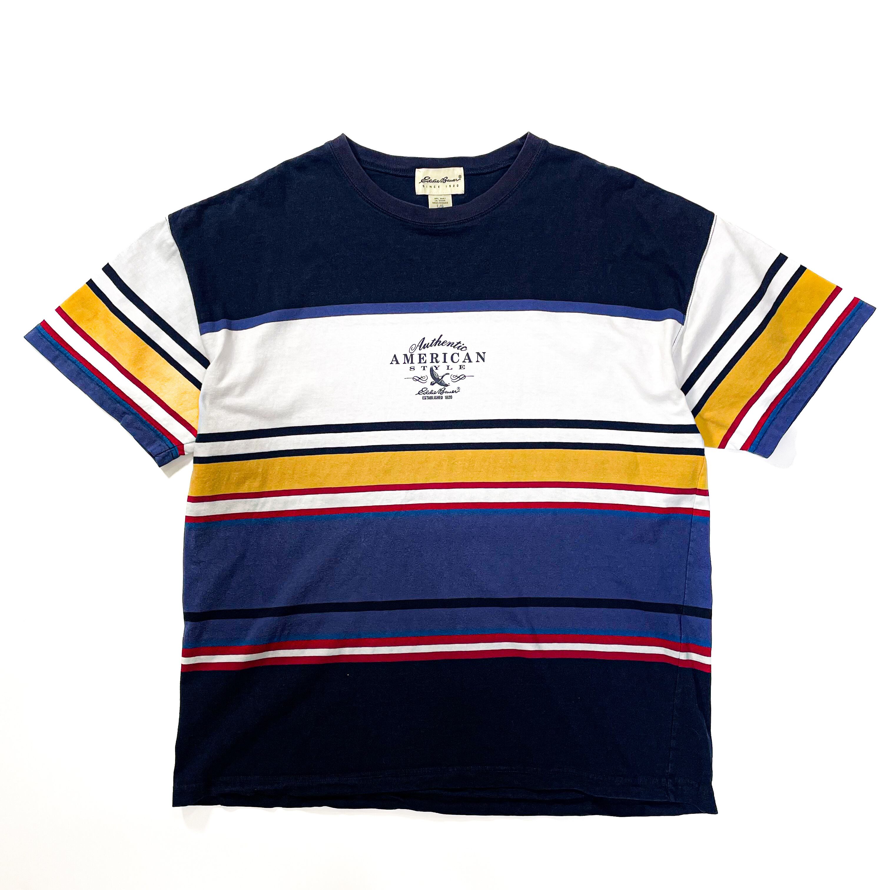 1990s " Eddie Bauer " cotton border printed t-shirts . size large.