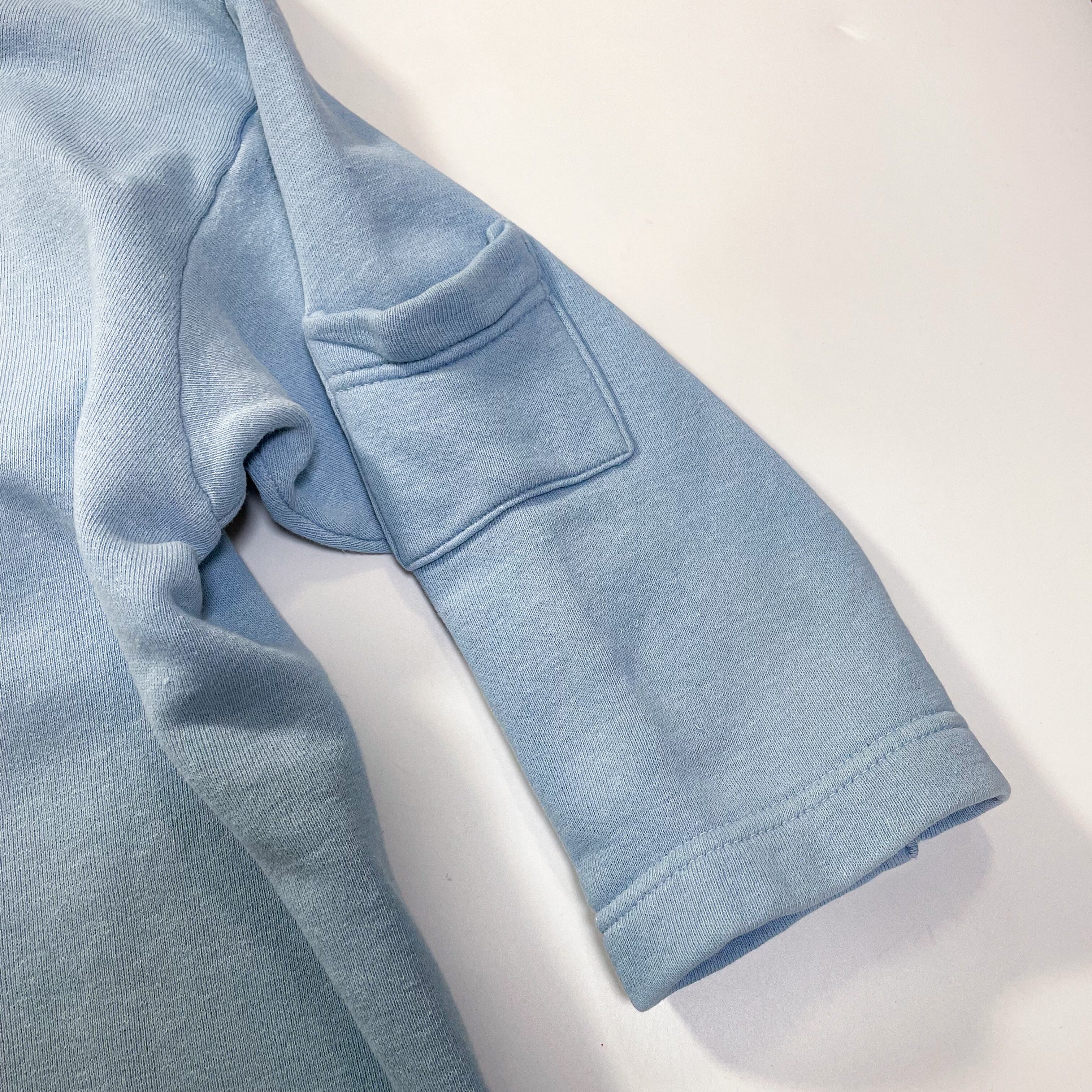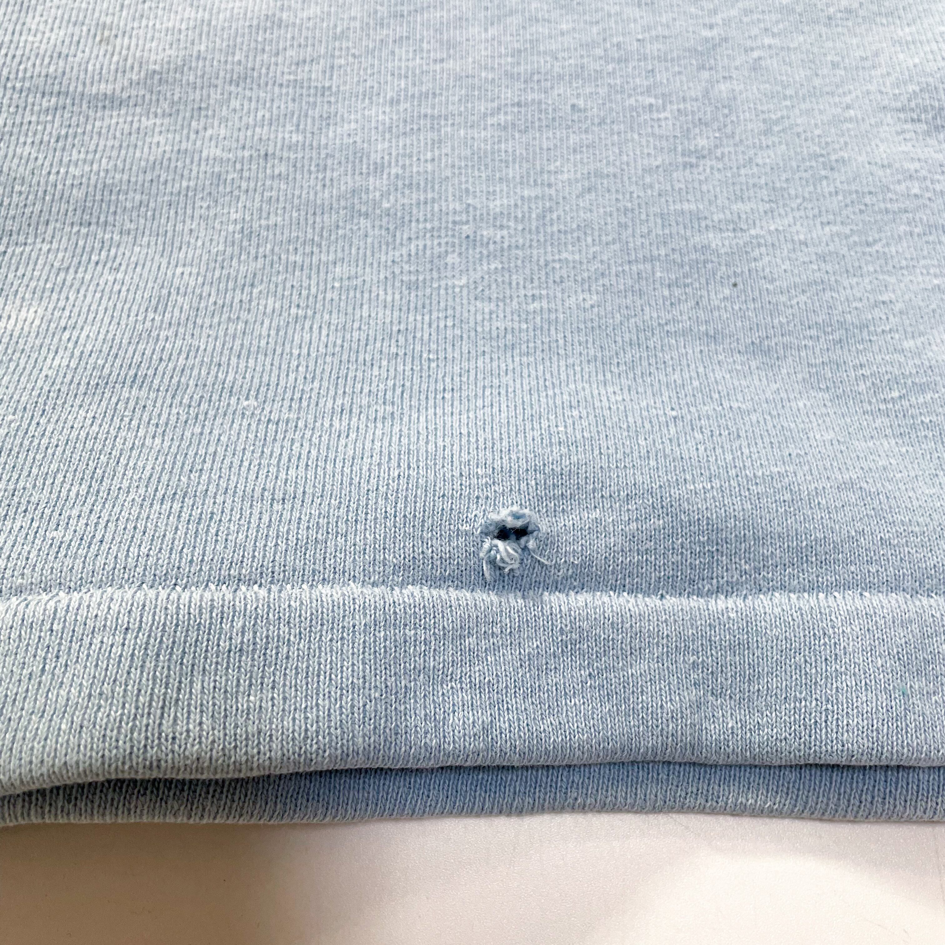 ヴィンテージスウェットらしいスカイブルーに白のラバー2段プリント。