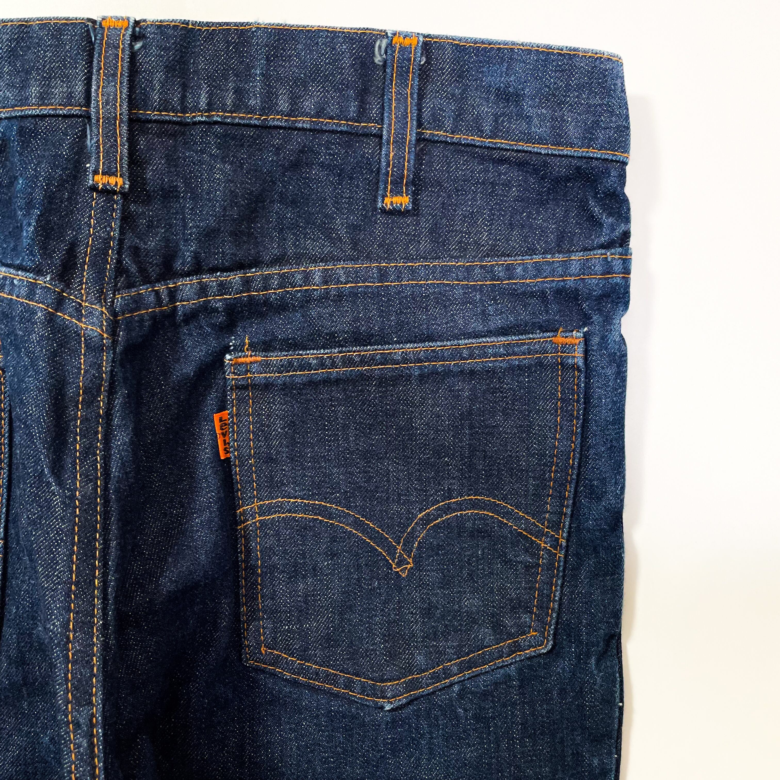 1970s " Levi's 646 " indigo denim bootscut pants . made in usa . size 31×30