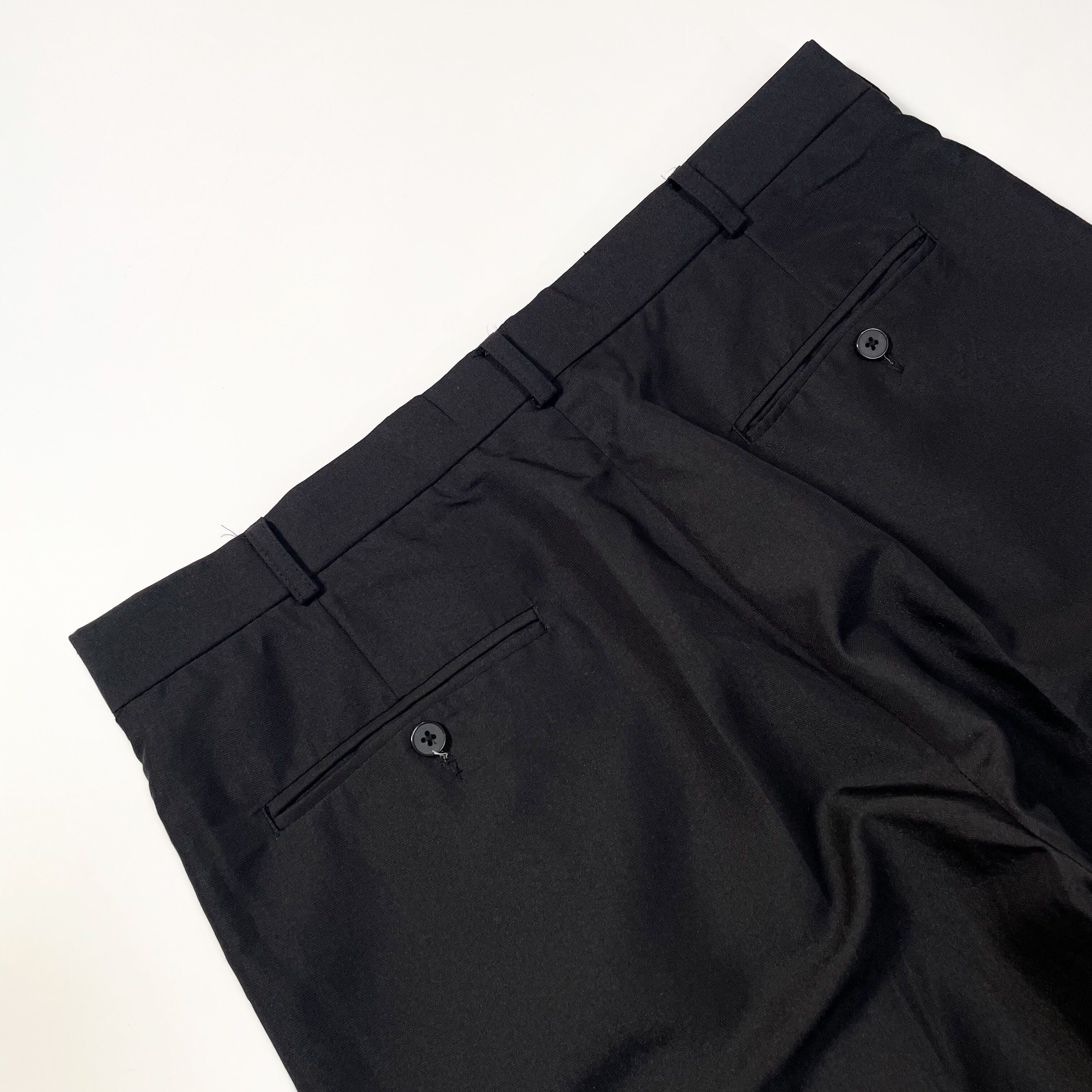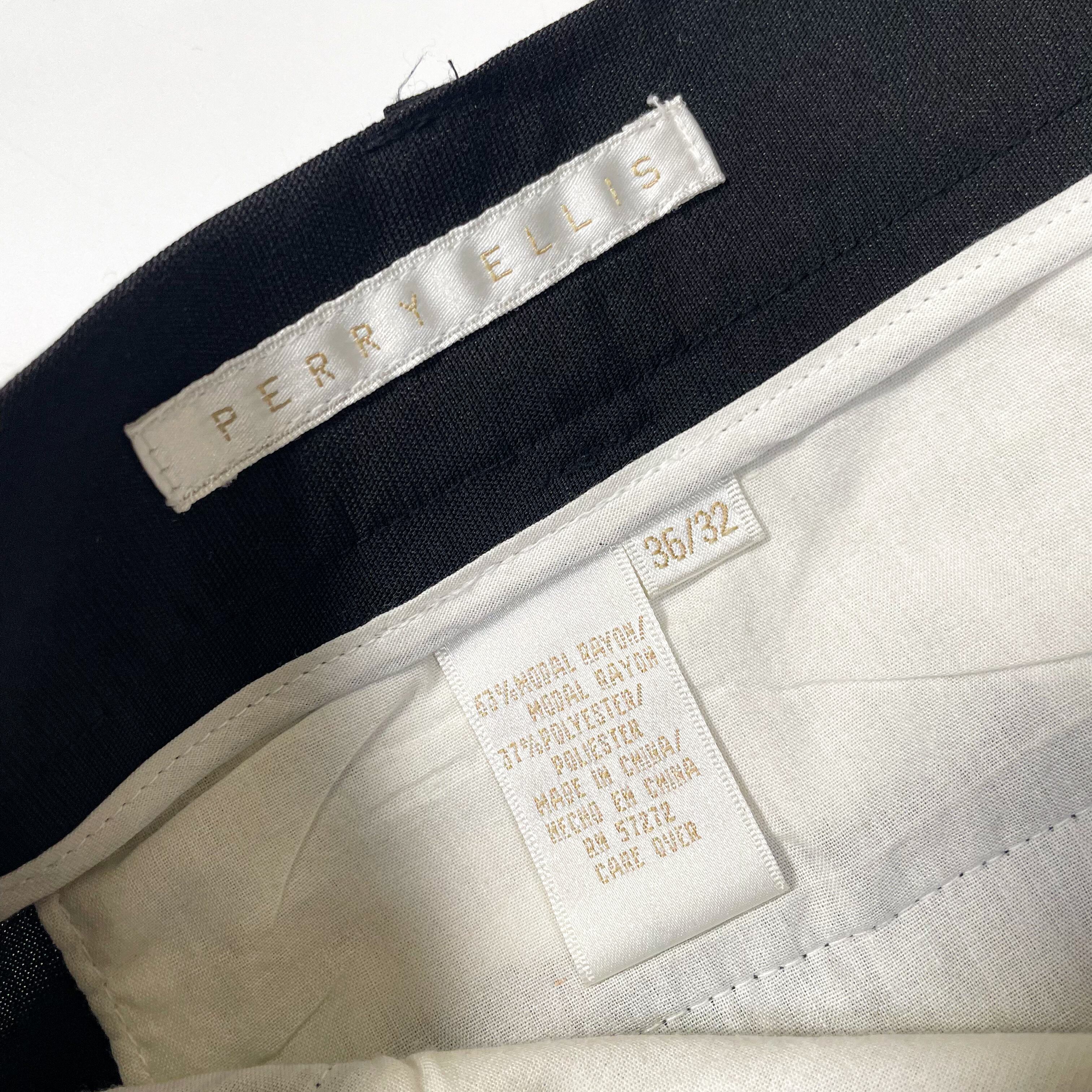 1980s " Perry ellis " black rayon poly two tuck slacks . size 36×29.