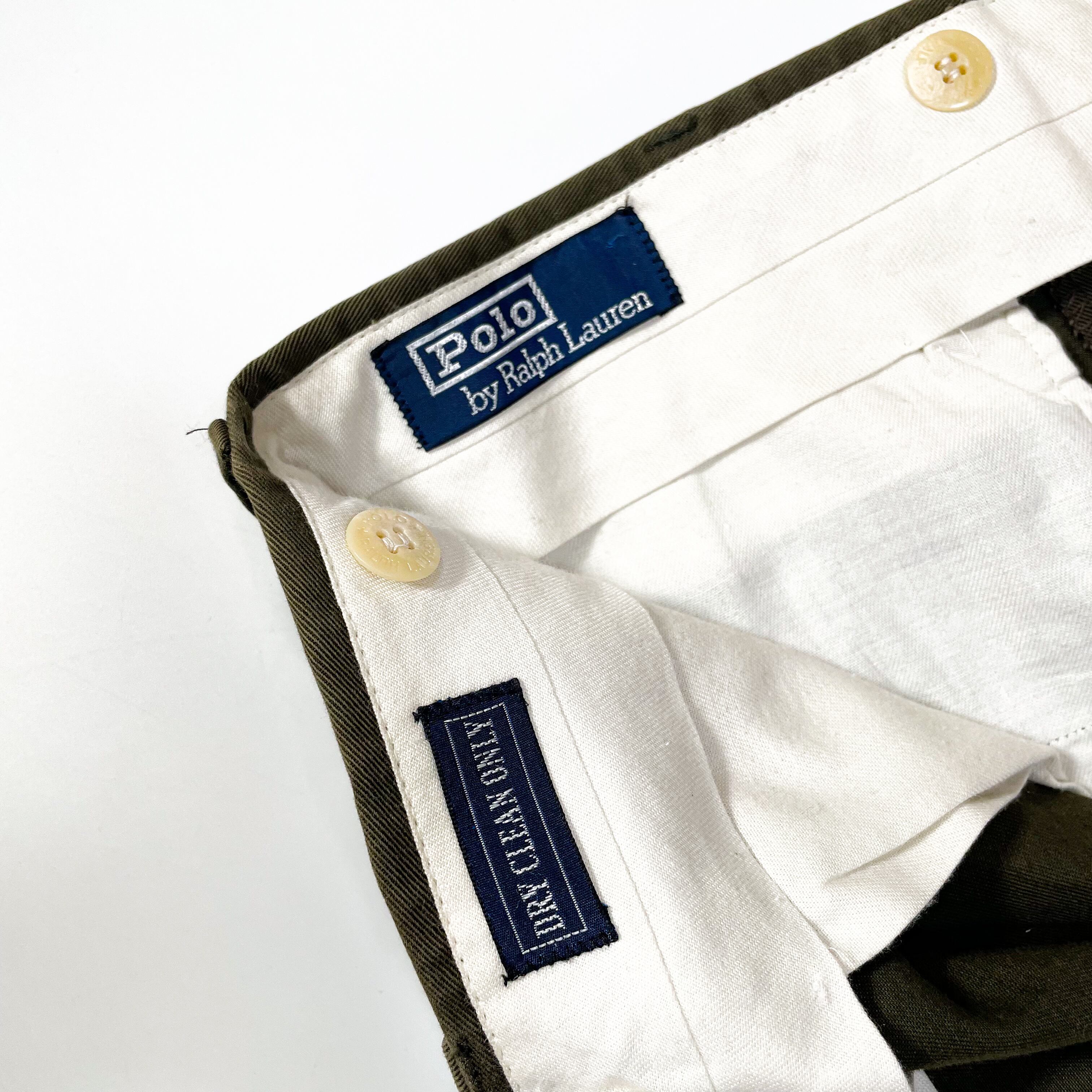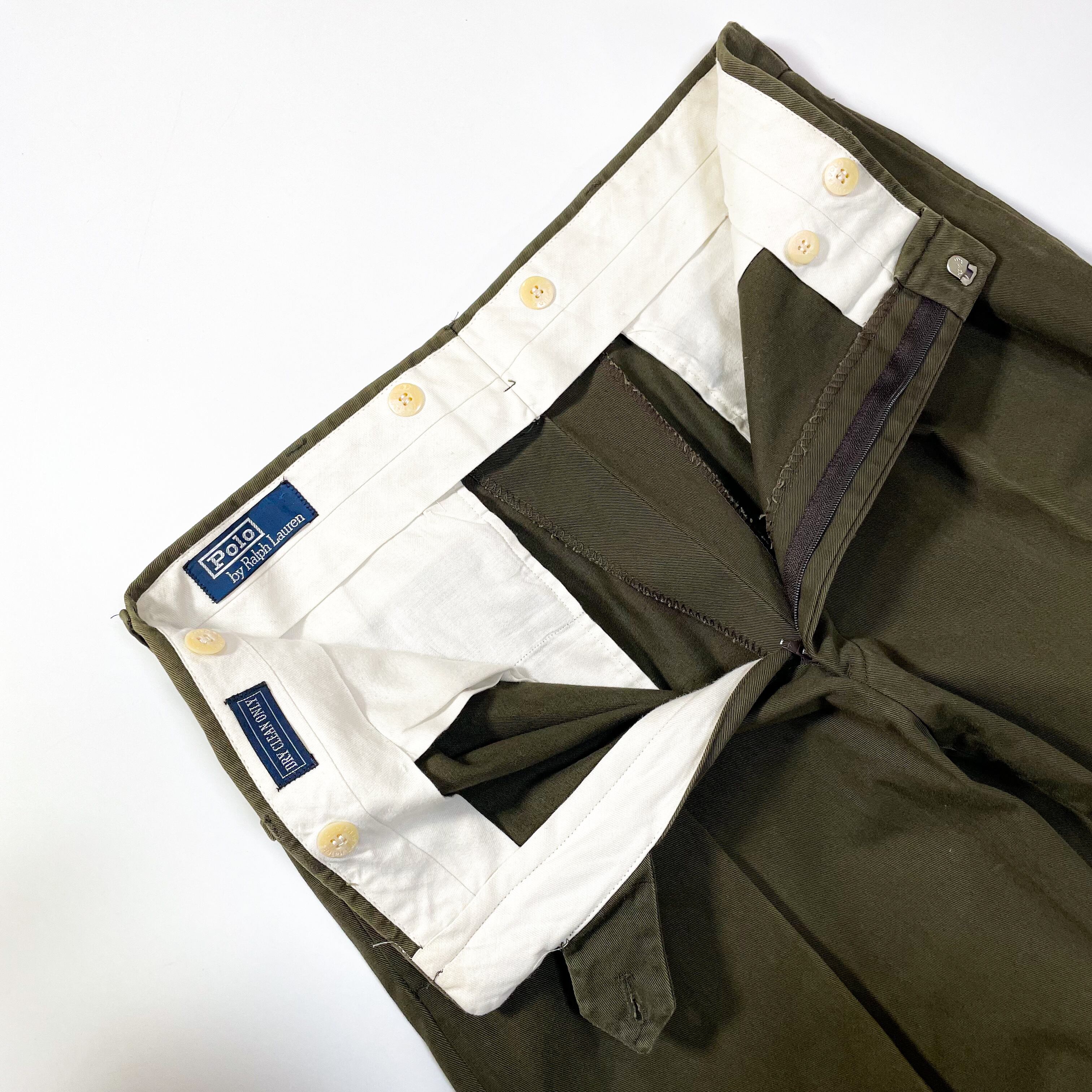 1990s " Polo Ralph Lauren " olive cotton two tuck slacks . size 33×29.