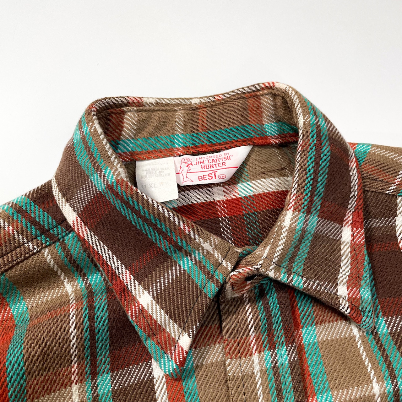 1970s " Jim catfish Hunter / Best " cotton flannel work shirts. made in usa . size xlarge .