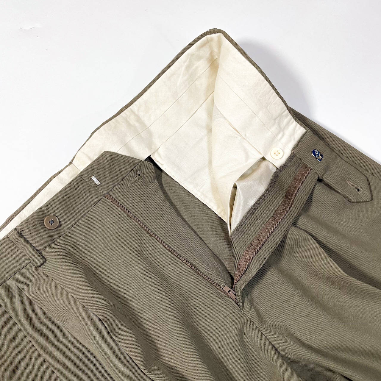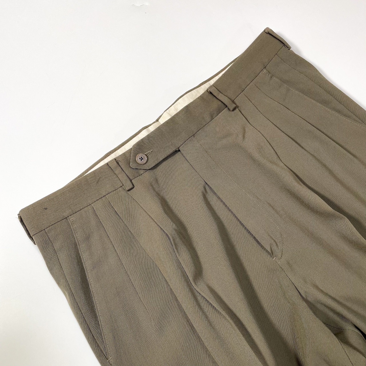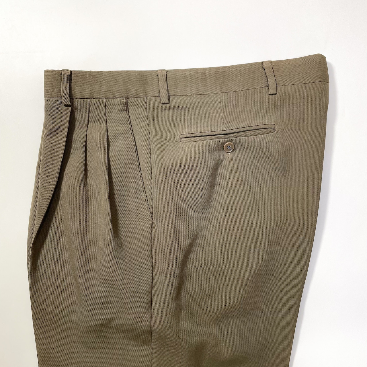 1990s " Givenchy " moca brown wool gabardine three tuck slacks . made in usa . size 33×30.