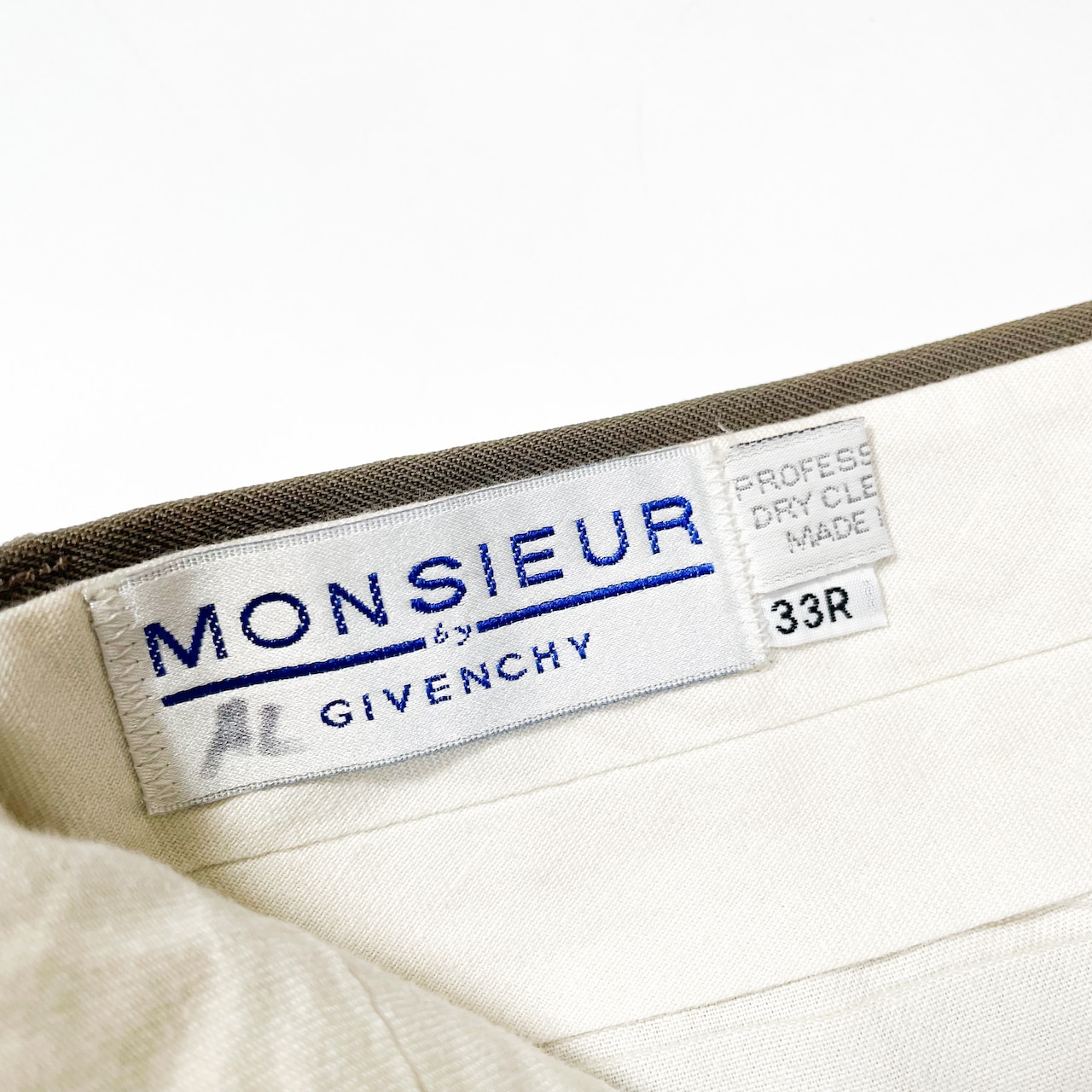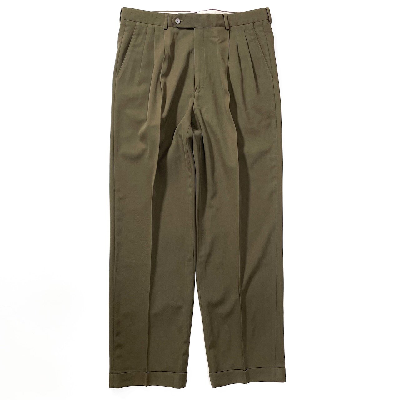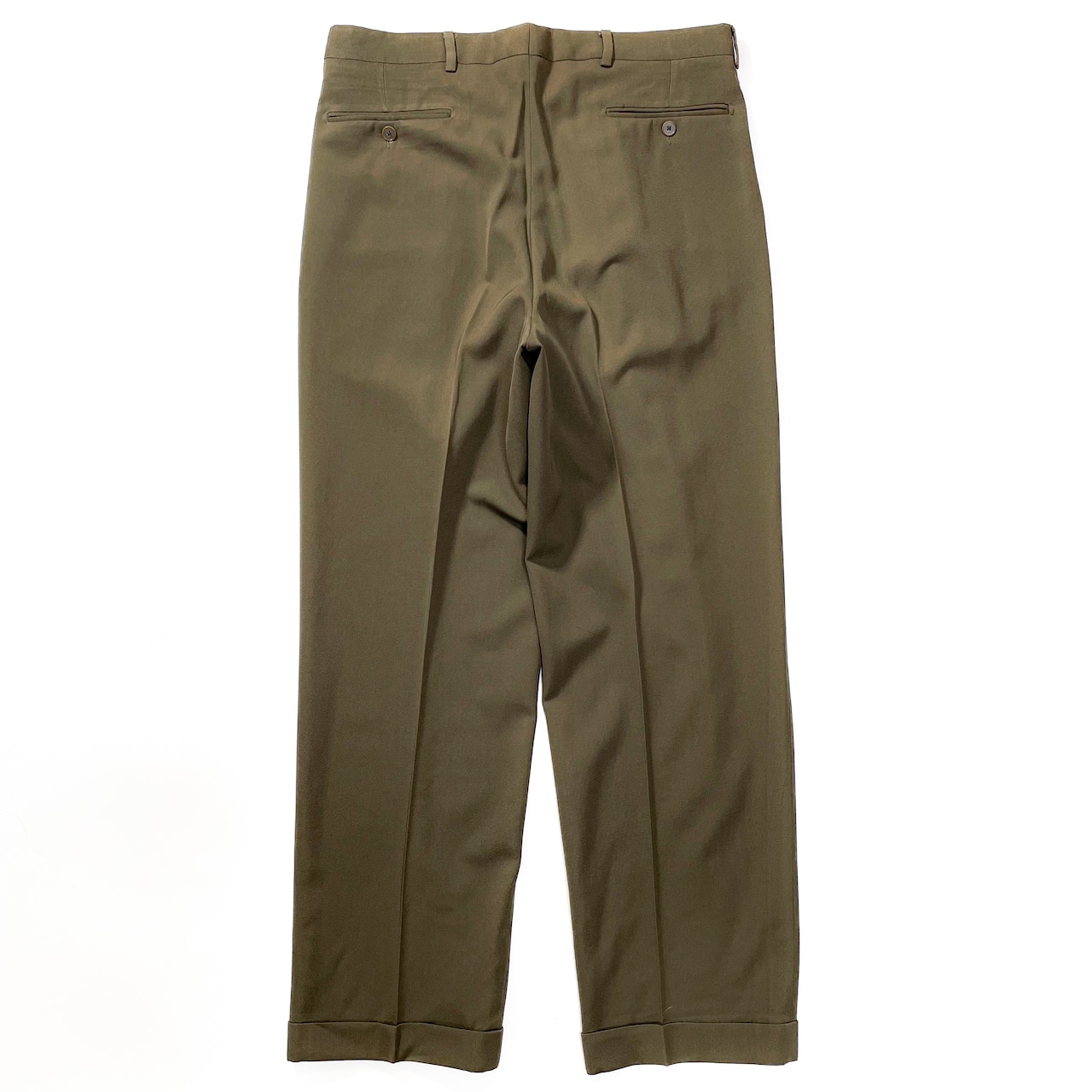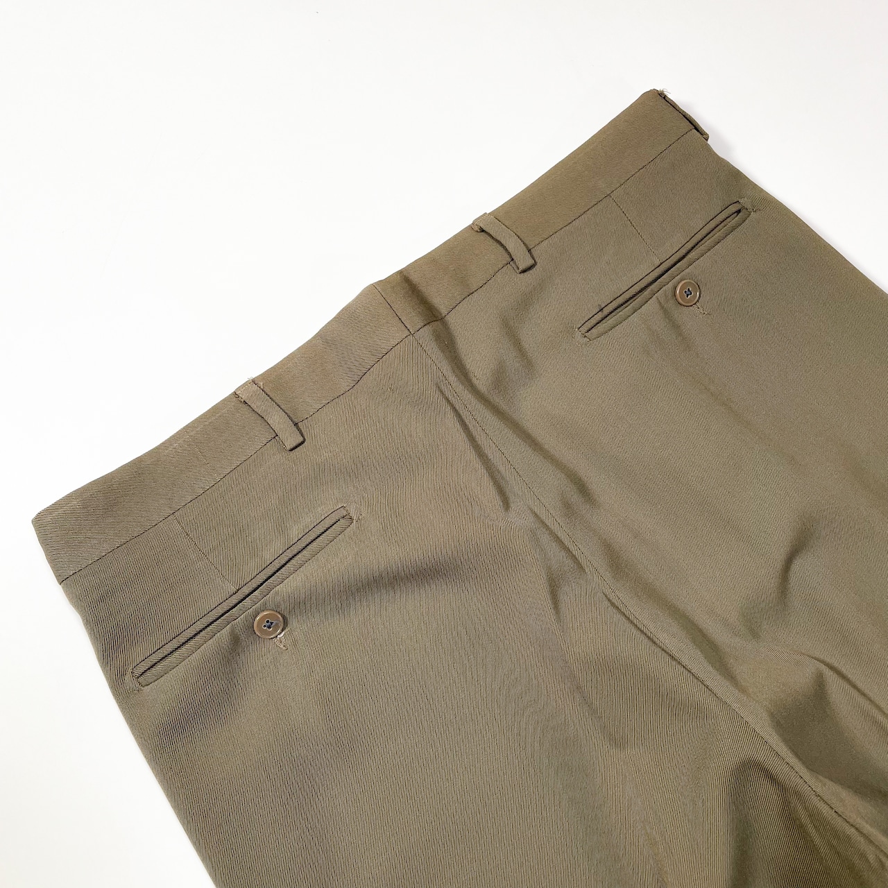 1990s " Givenchy " moca brown wool gabardine three tuck slacks . made in usa . size 33×30.