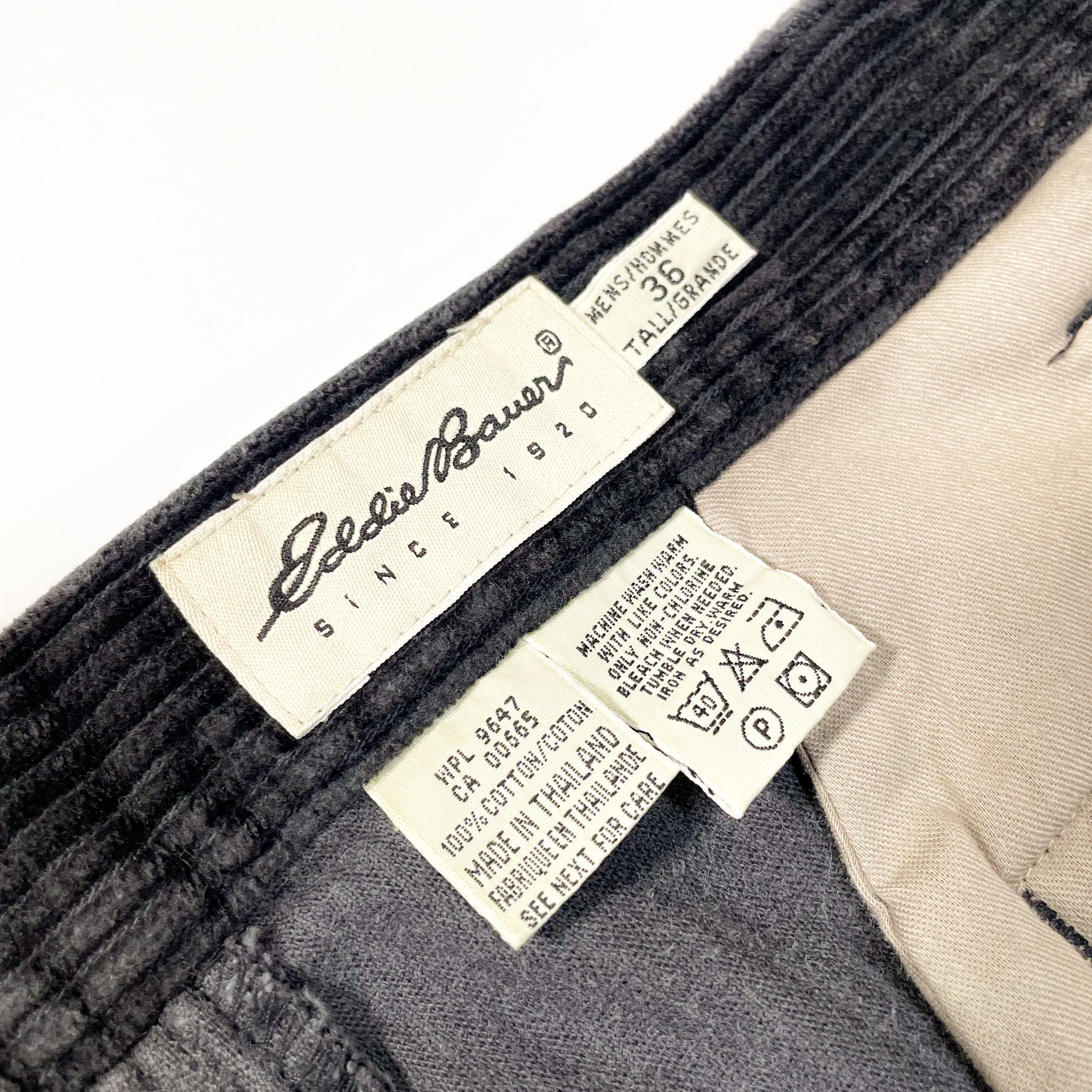 1990s " Eddie Bauer " faded black wide wale corduroy two tuck trousers . size 36×29.