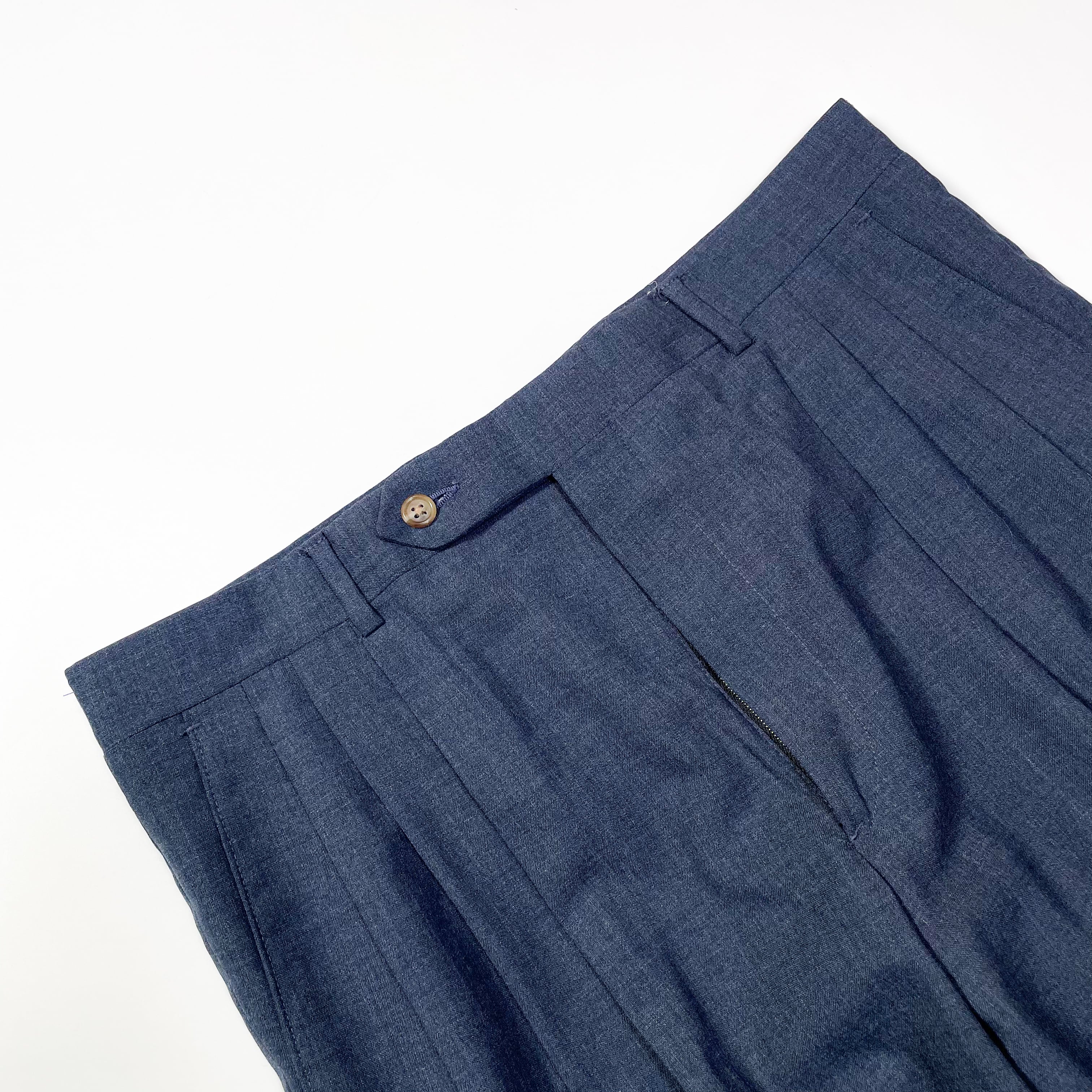 1990s " Corbin / Parisian " blue navy wool three tuck slacks . made in usa . size 33×29.