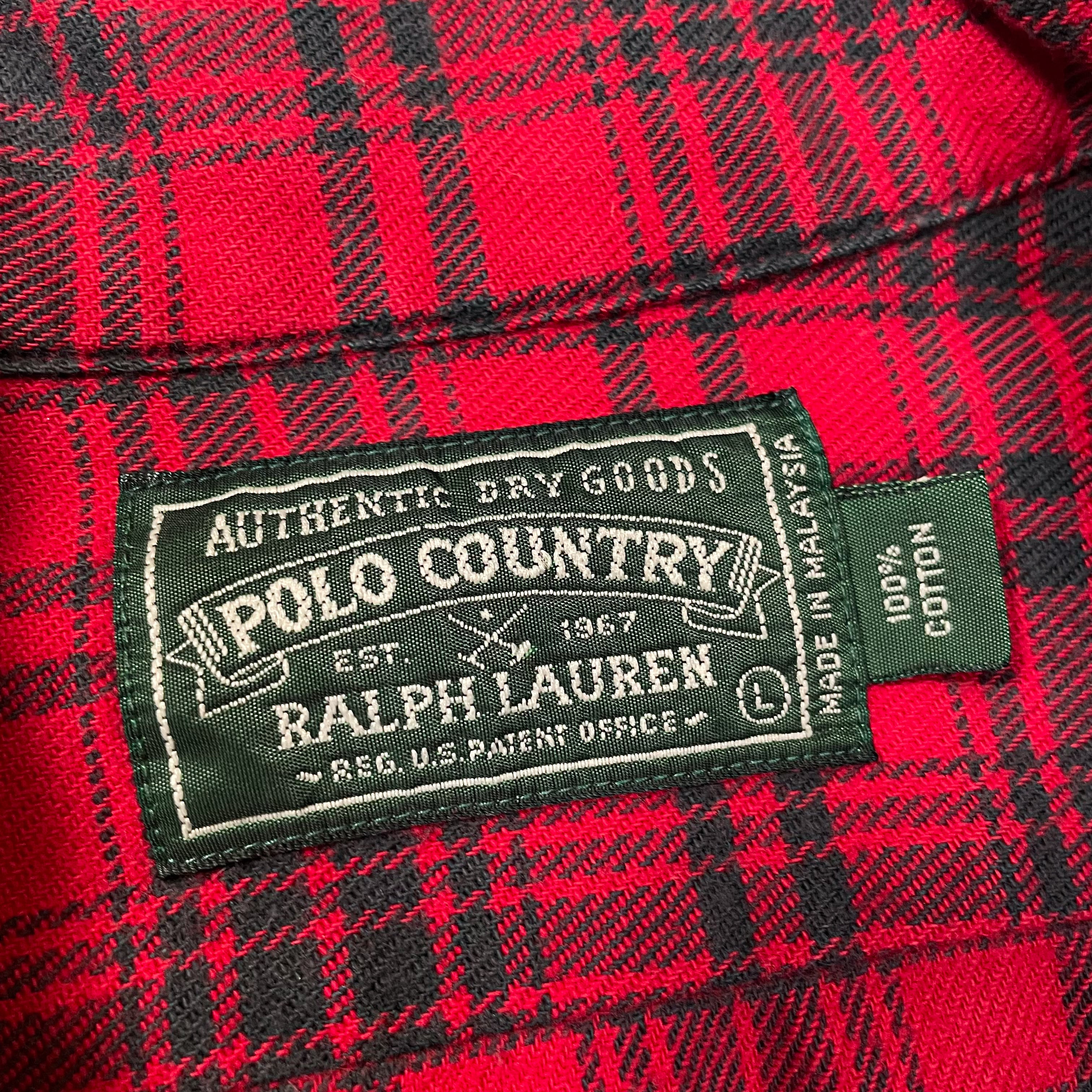 1990s " Polo country / Ralph Lauren " cotton flannel loop collar shirts . size large .