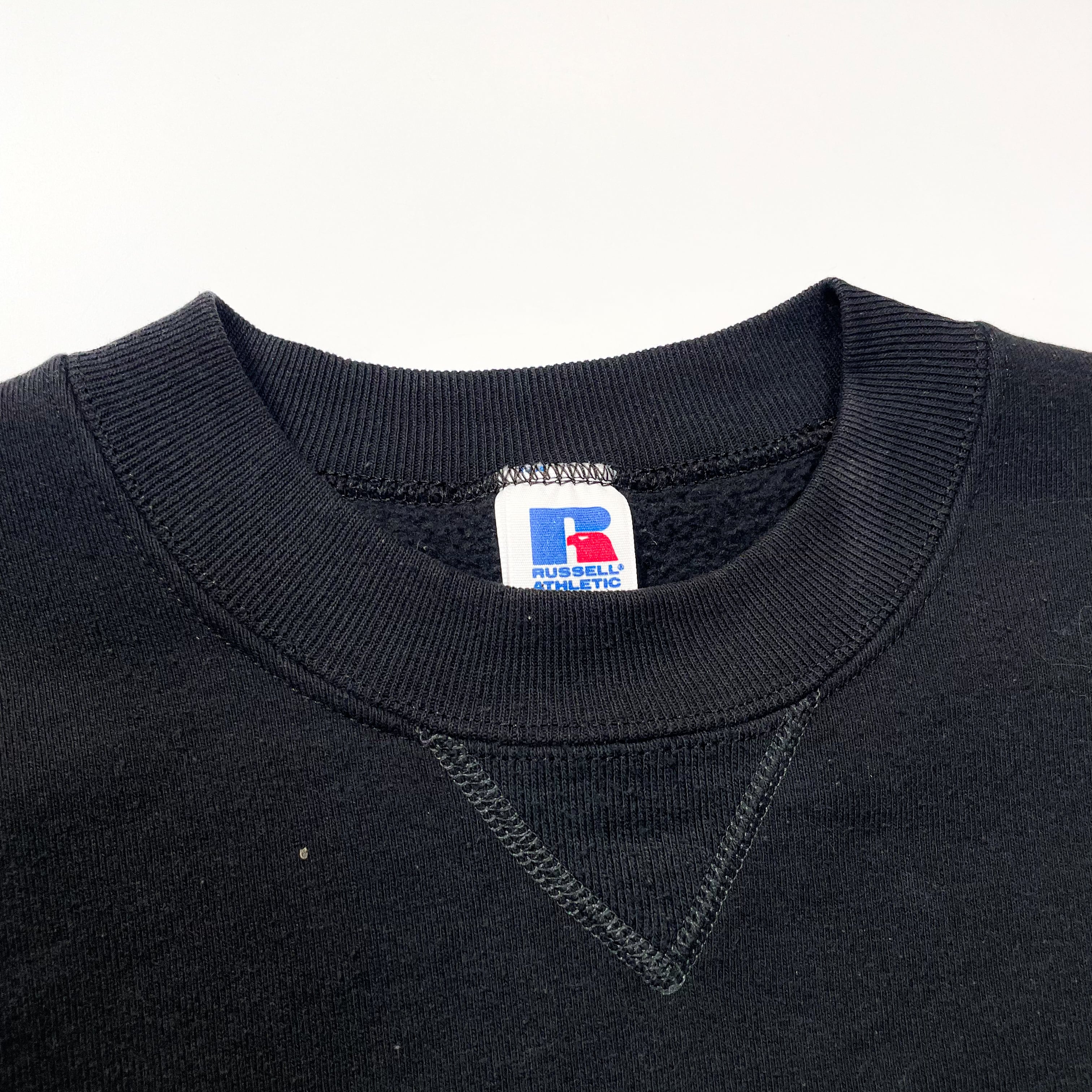 1980s " Russell " black frontV sweat . made in usa . size large.