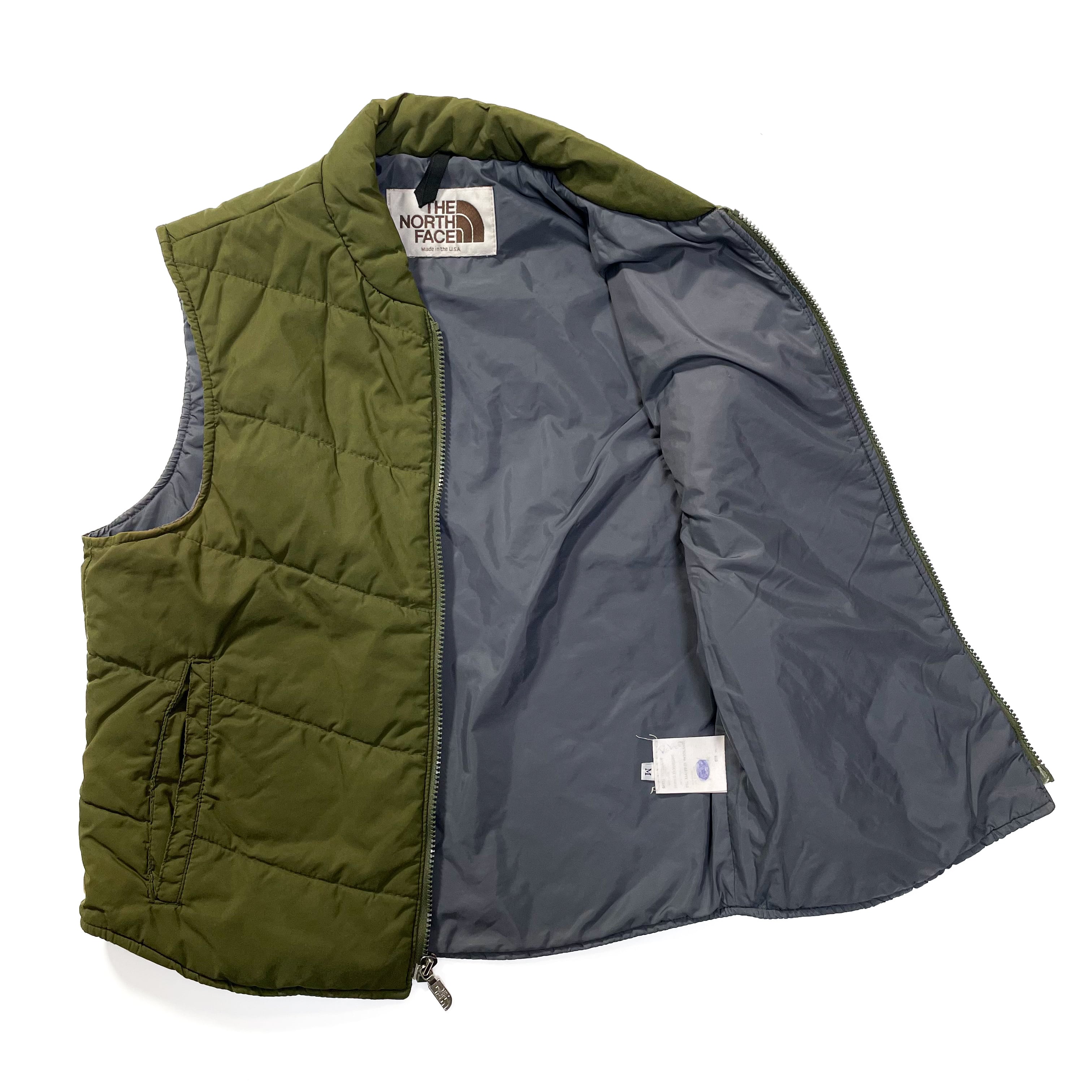 1980s " The North Face " olive nylon padding vest . made in usa . size medium .