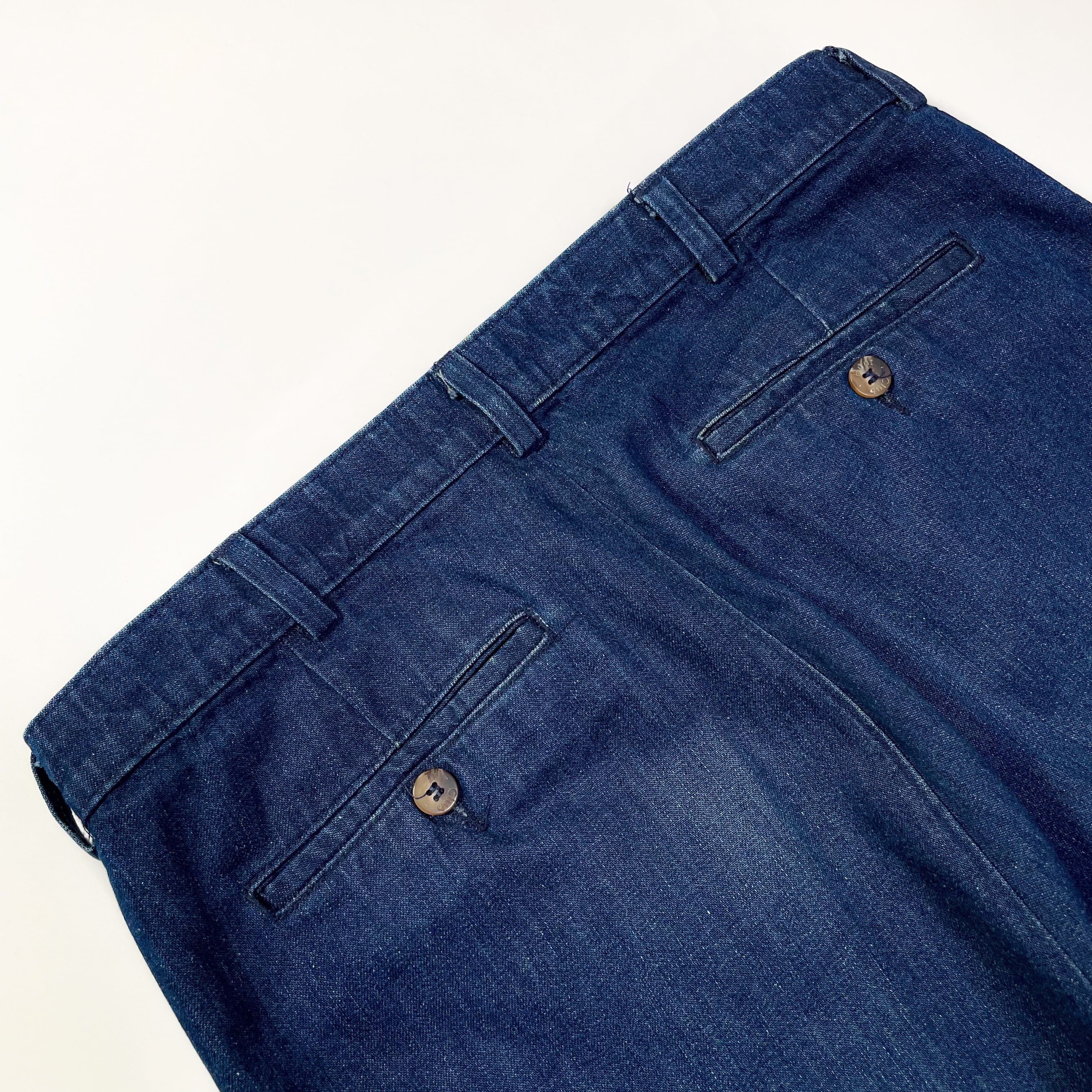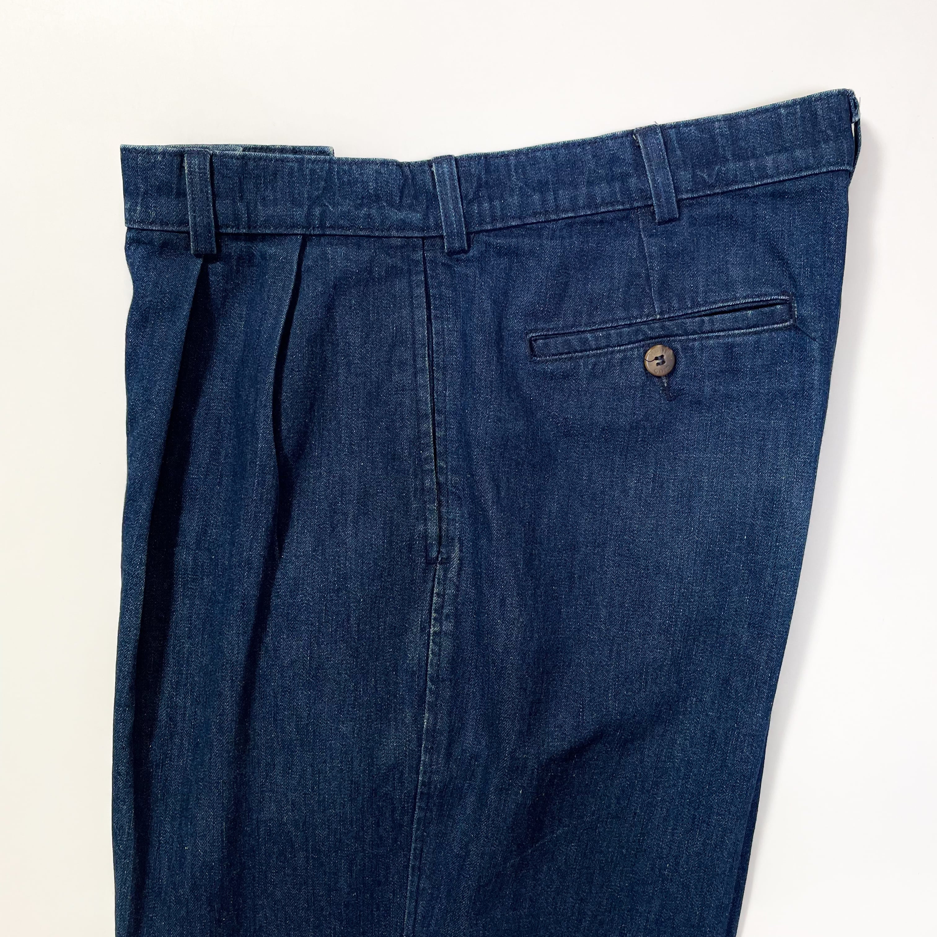 濃いインディゴデニム生地の2タックスラックス。