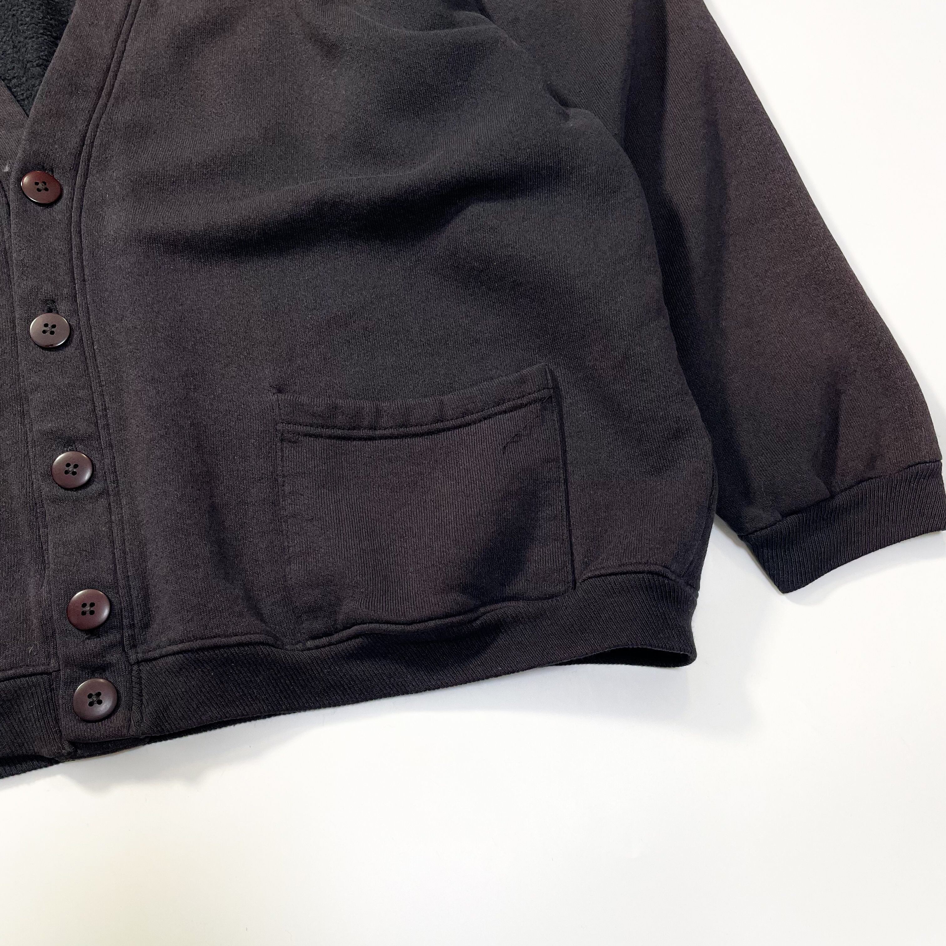 1980s " Hanes " sun faded black sweat cardigan . made in usa . size xlarge.