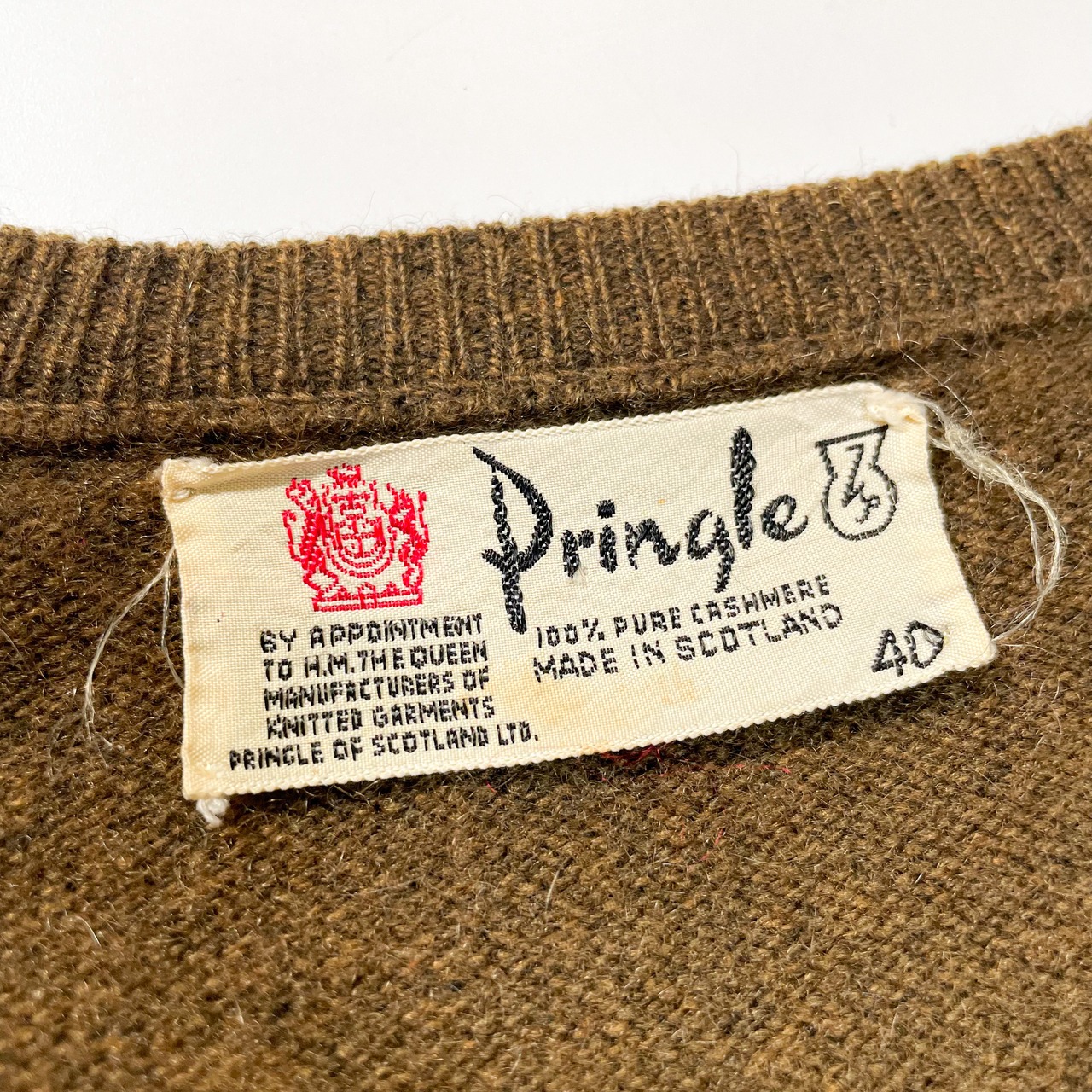 1980s " Pringle " 100%cashmere Vneck knit . made in Scotland . size 40.