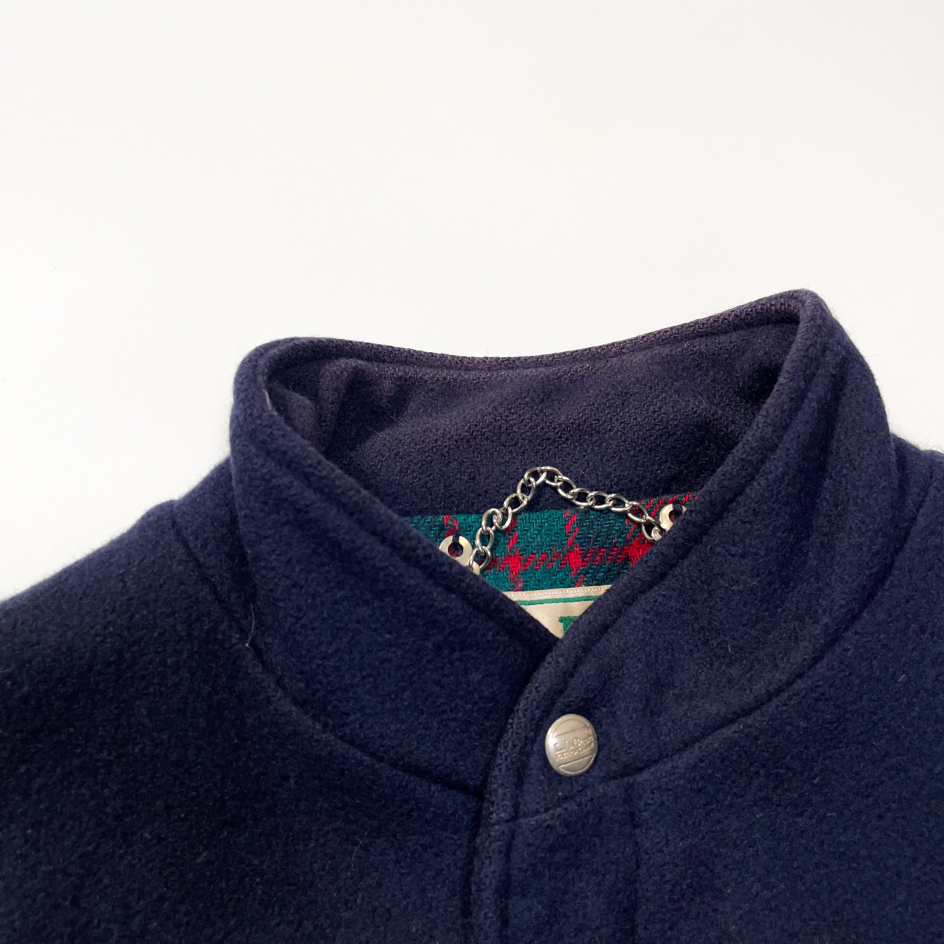 1980s " L.L.Bean " navy wool stand collar jacket . made in usa . size large .