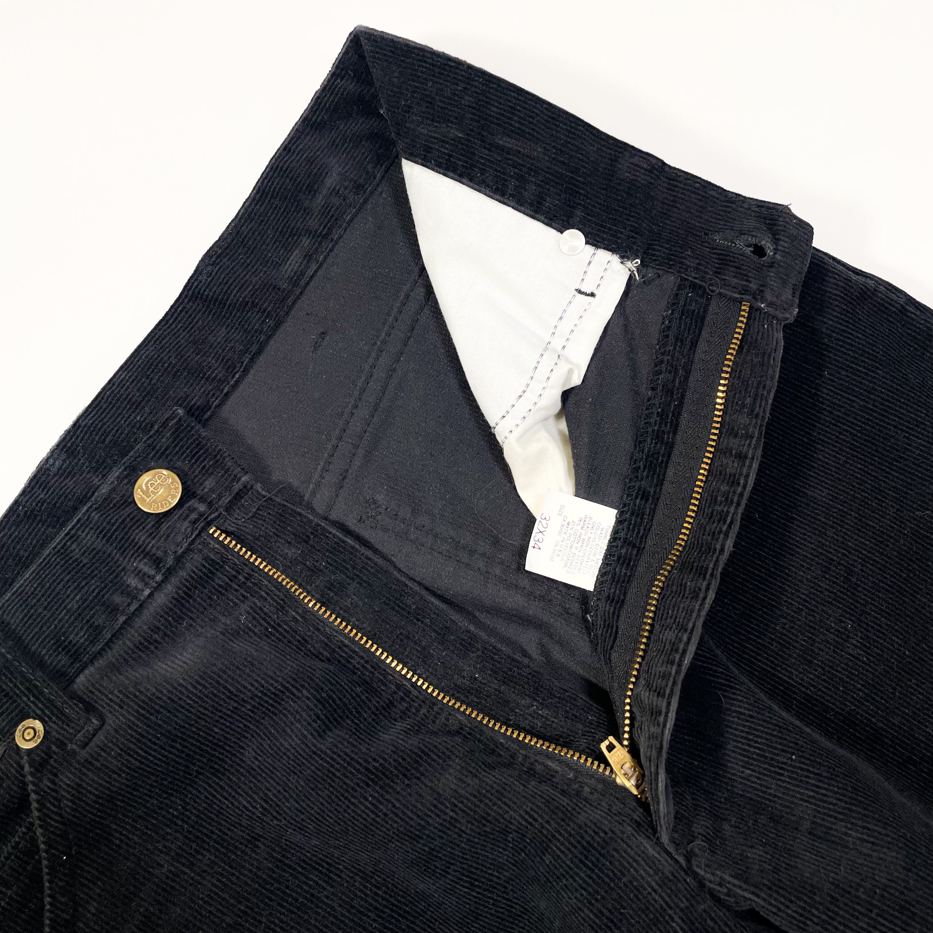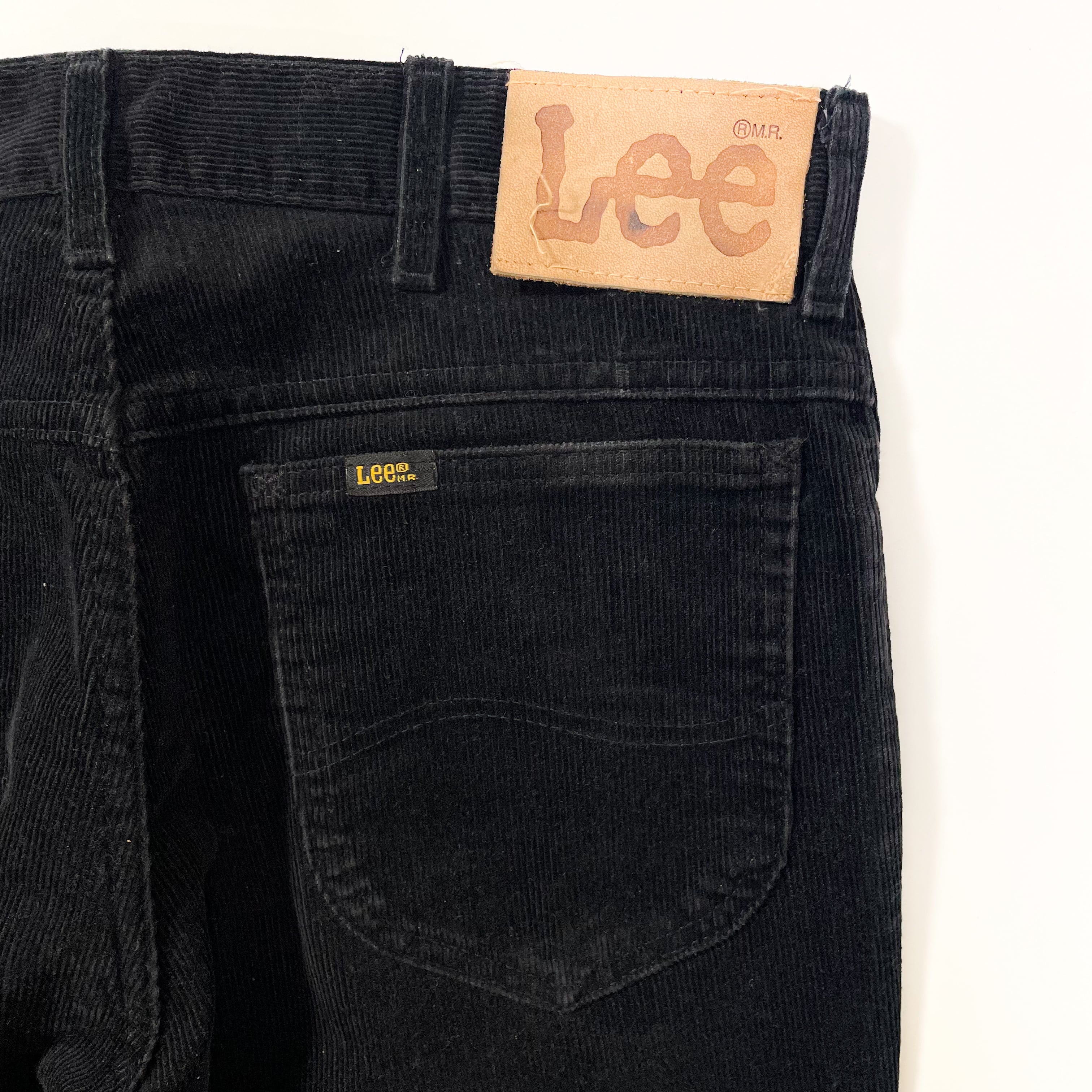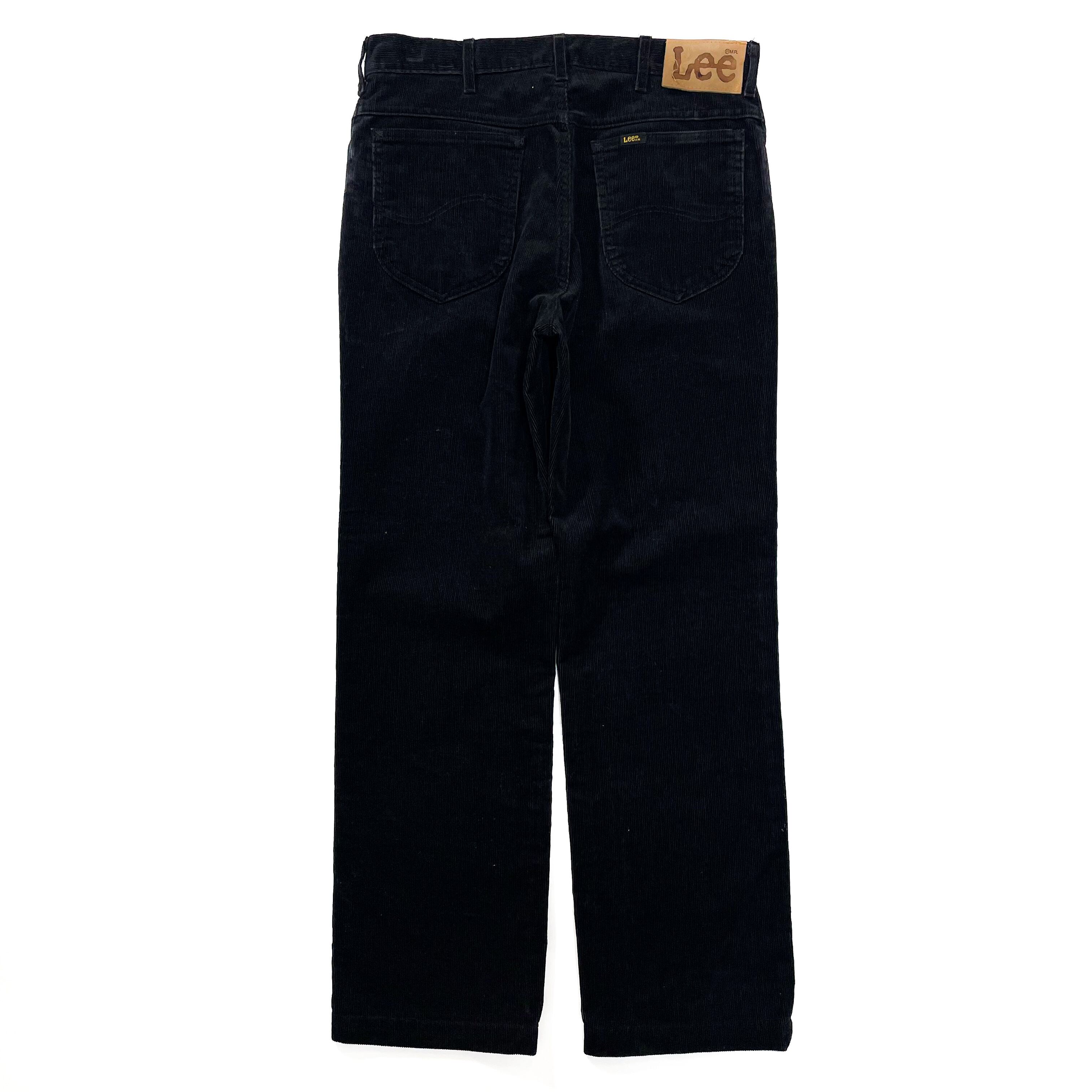 1980s " Lee 200 " black corduroy straight pants . made in usa . size 32×29.