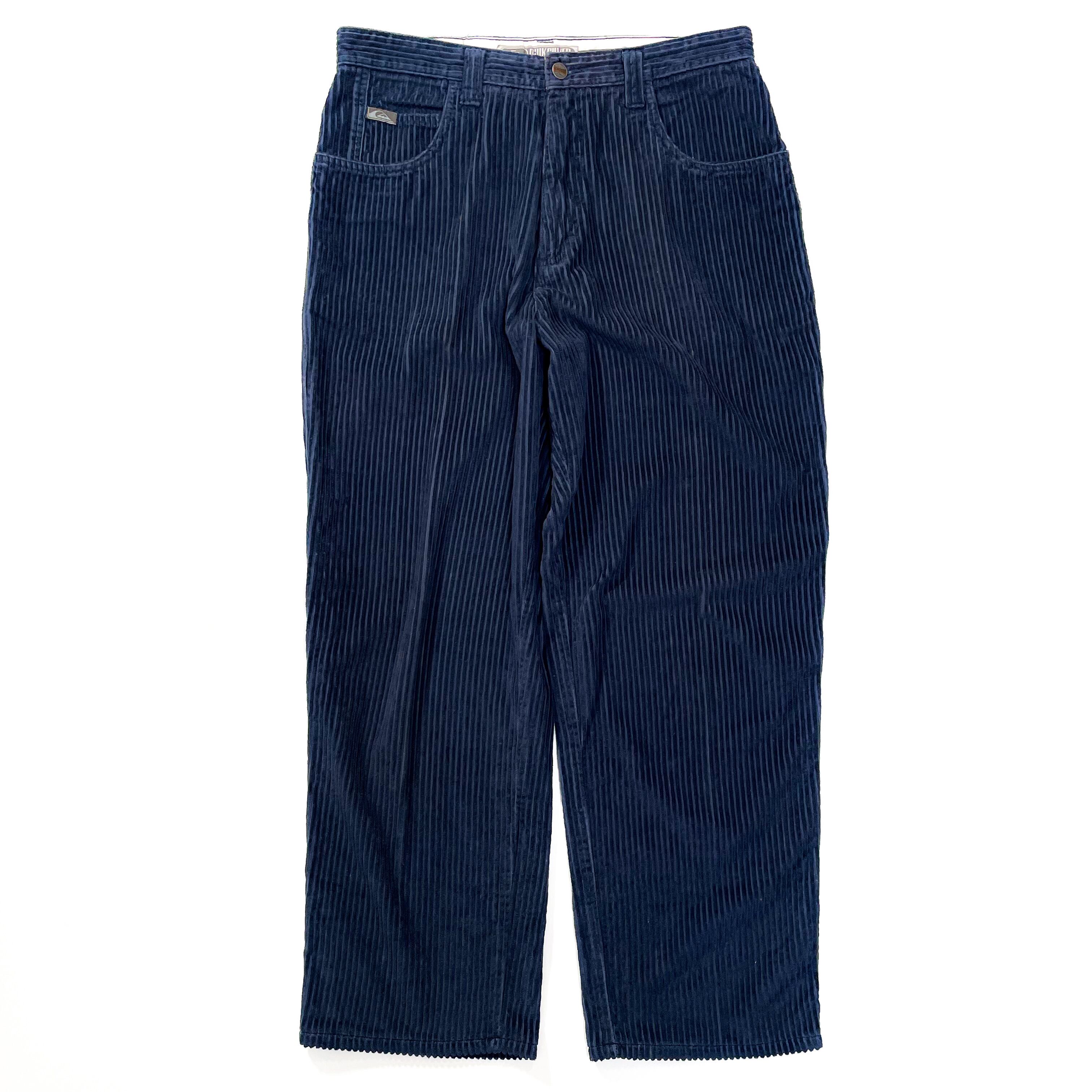 1990s " Quicksilver " navy wide wale corduroy baggy pants . size 33×29.