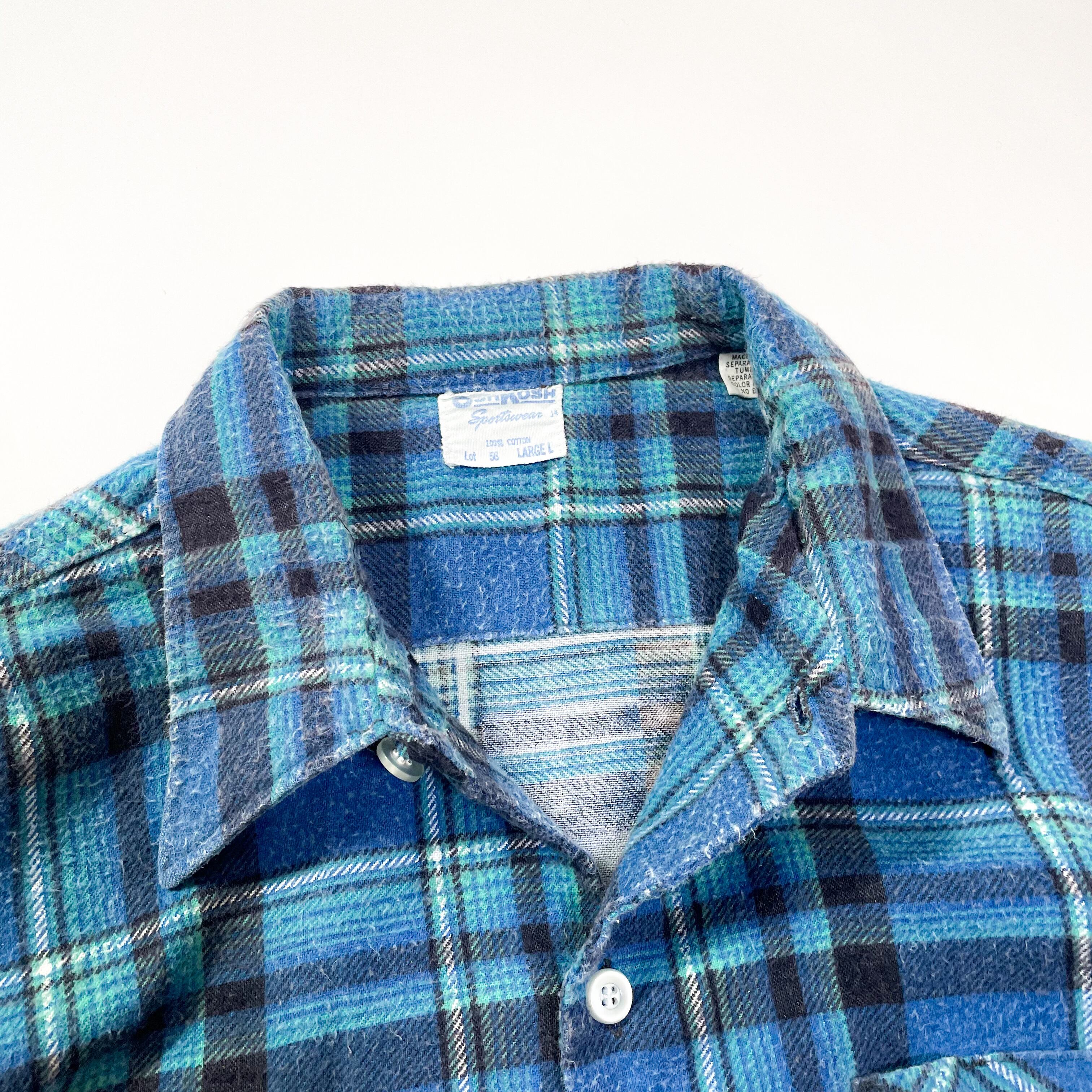 1960s " Oshkosh " cotton printed flannel shirts. made in usa . size large.