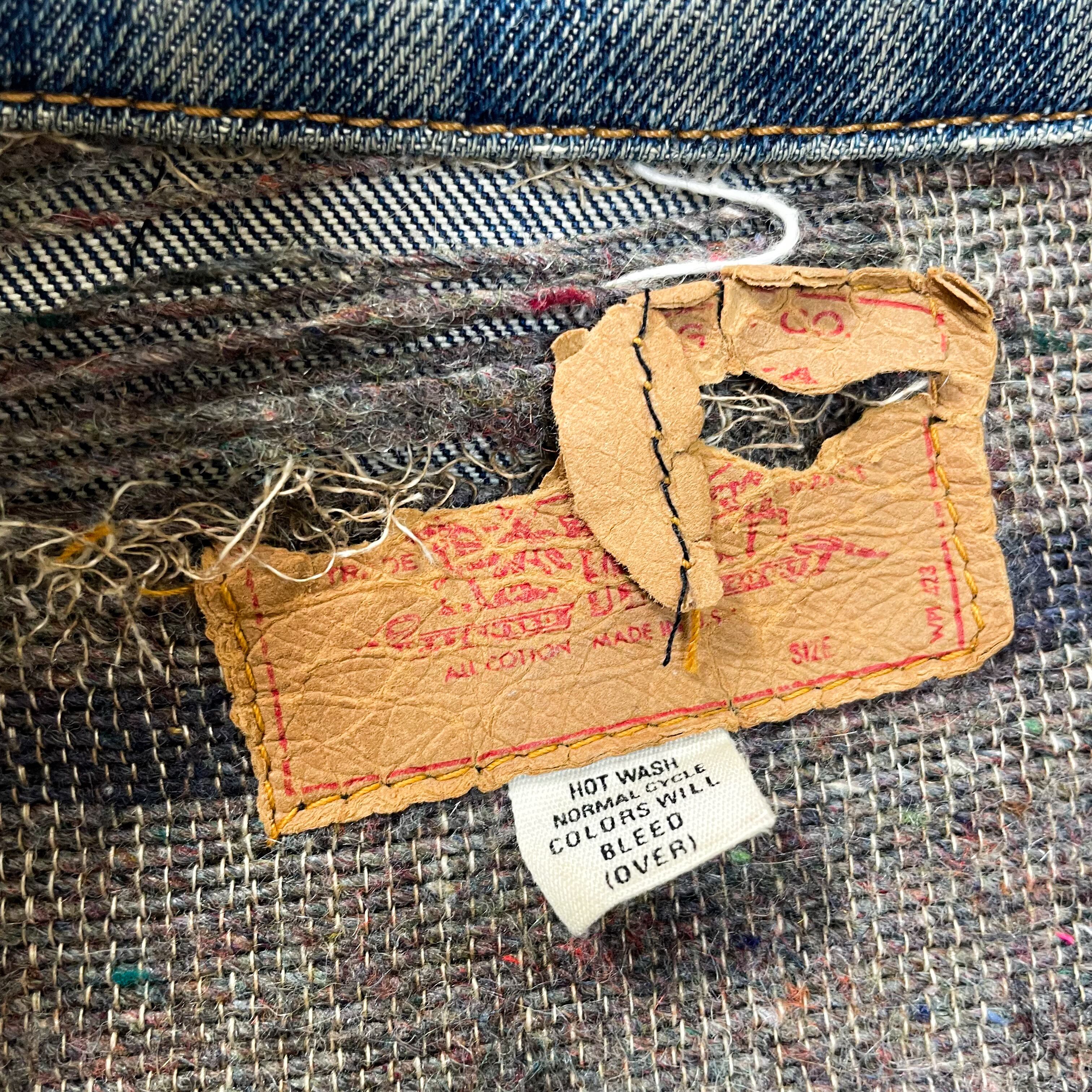 1960s " Levi's 70505 0317 / bigE " indigo denim blanket liner jacket . made in usa . size 46-48.