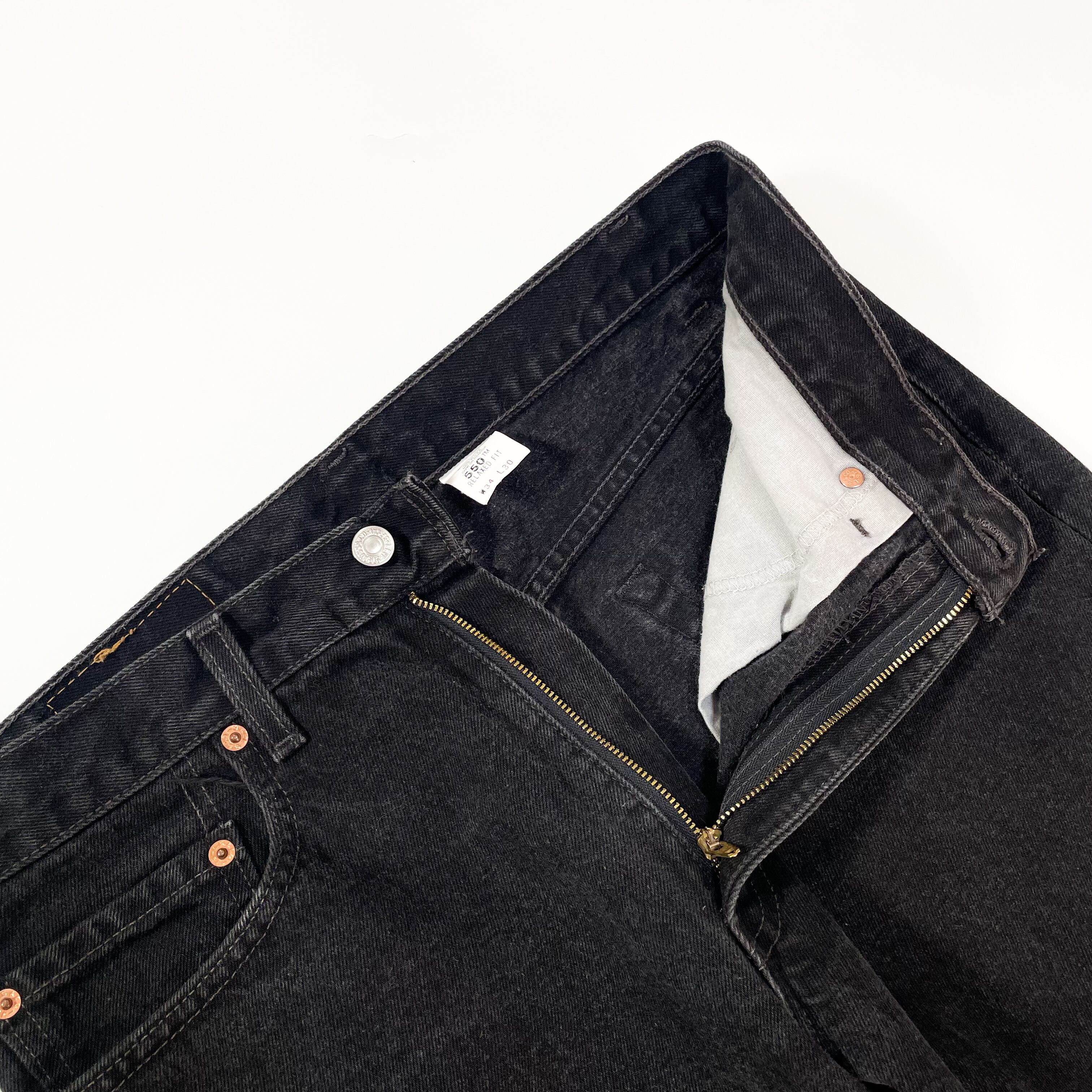 1990s " Levi's 550 " black denim relaxed pants . made in usa . size 34×29.