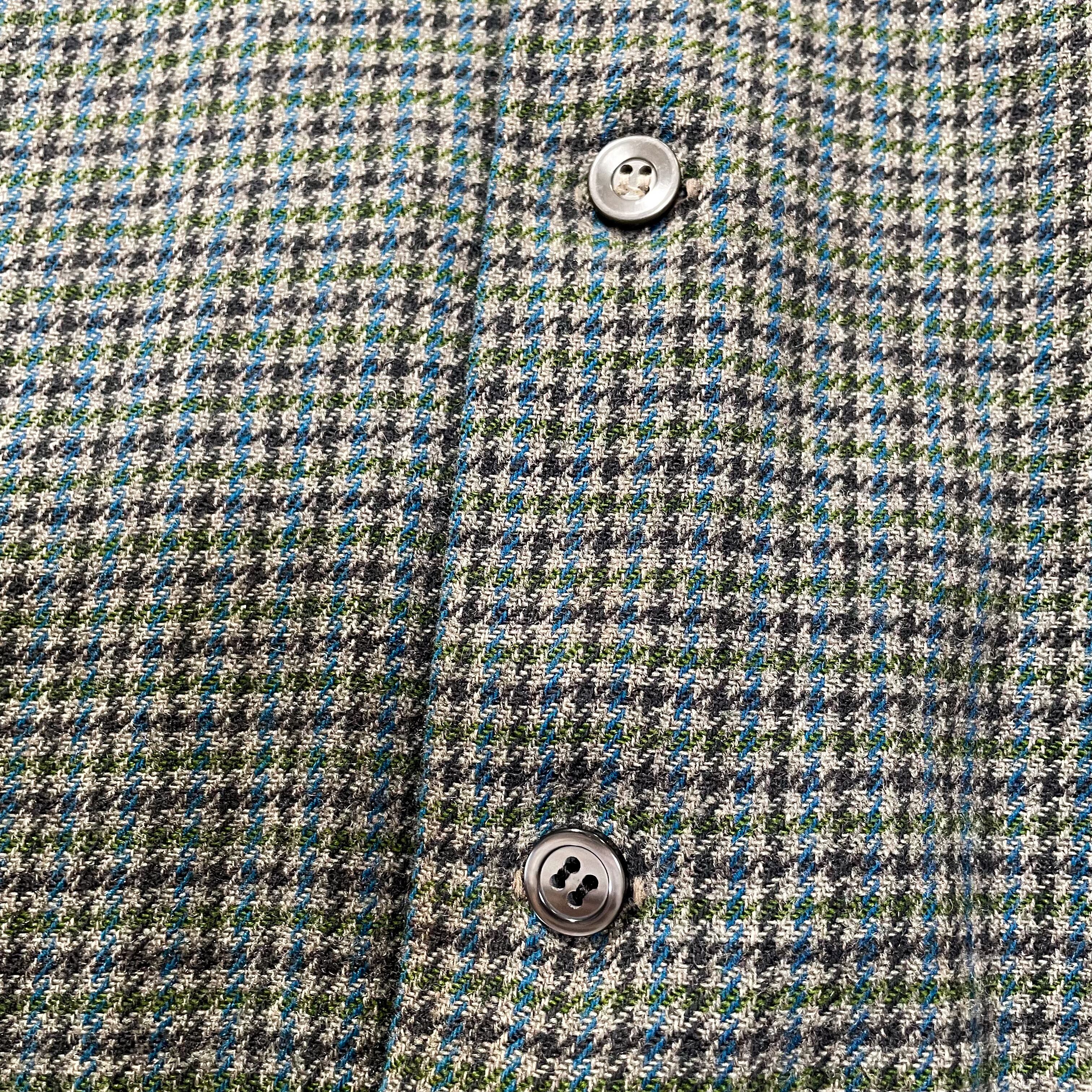 多色使いながらもまとまりのある細かな千鳥柄に質の良いヴァージンウールを使ったオープンカラー。