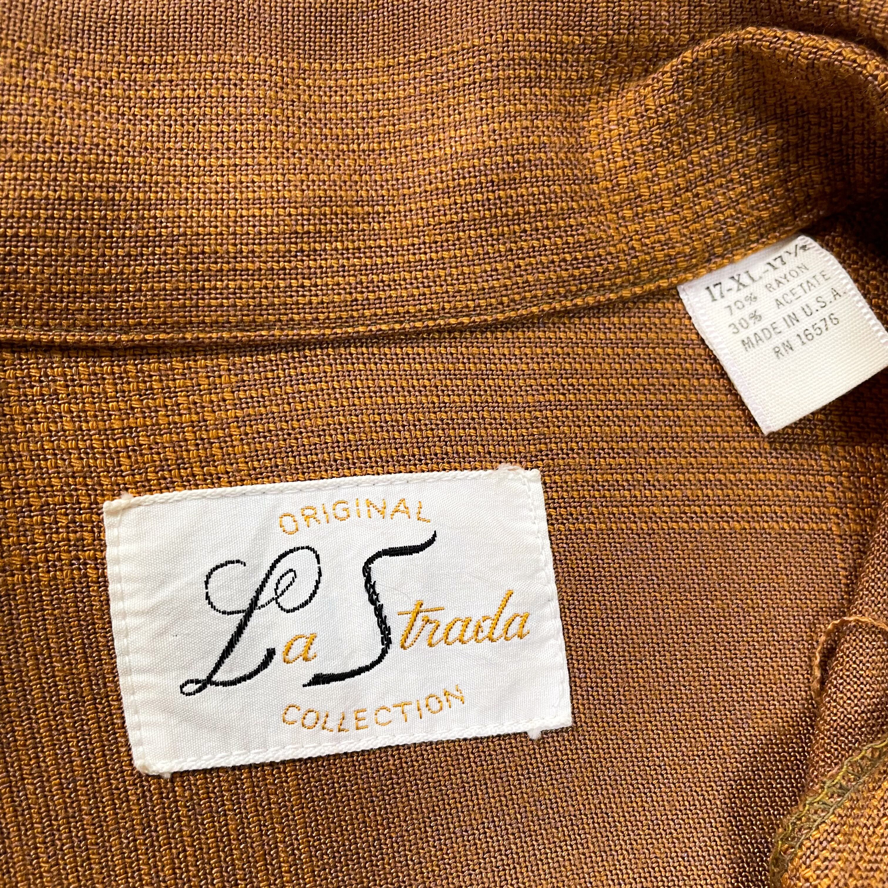 1960s " La Strada " rayon plaid loop collar shirts. made in usa . size xlarge .