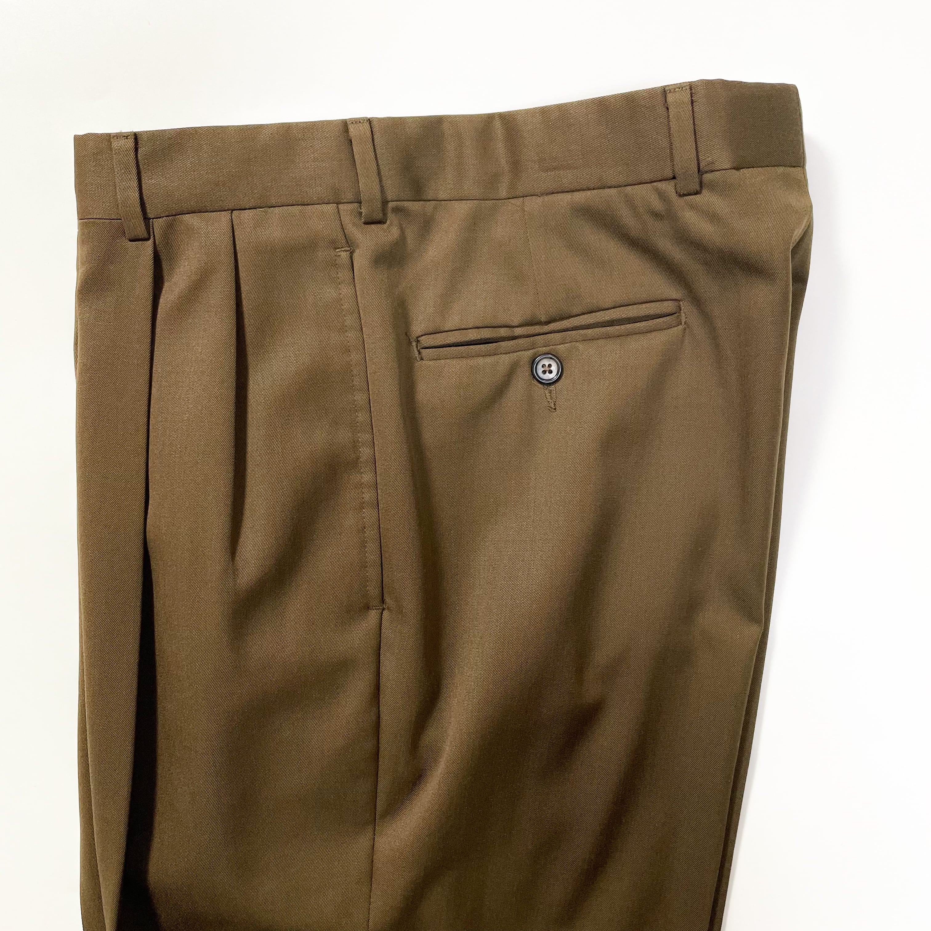 1990s " Nordstrom " brown wool two tuck slacks . made in usa . size 33×28.
