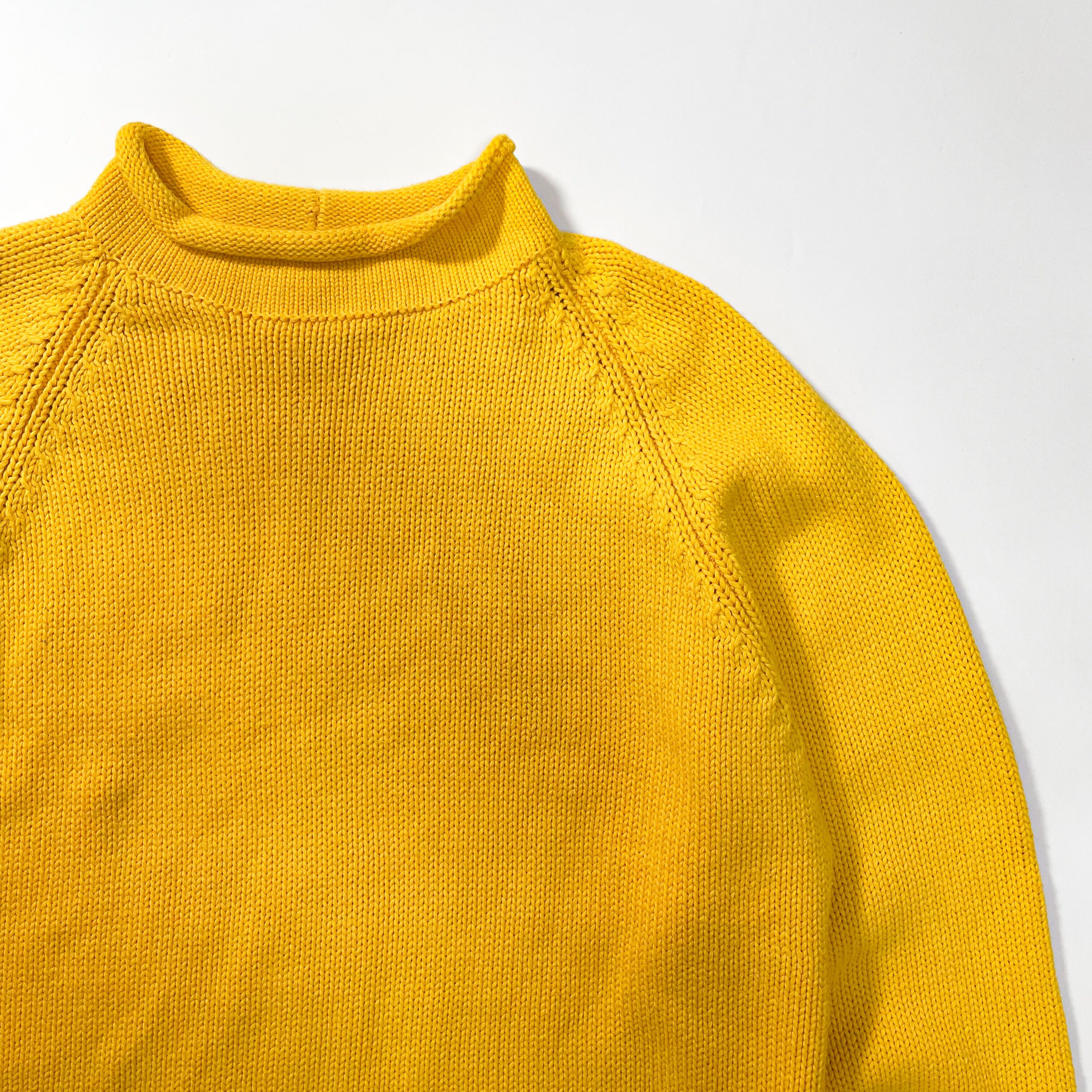 1980s " J.crew " yellow cotton roll neck knit . size large.