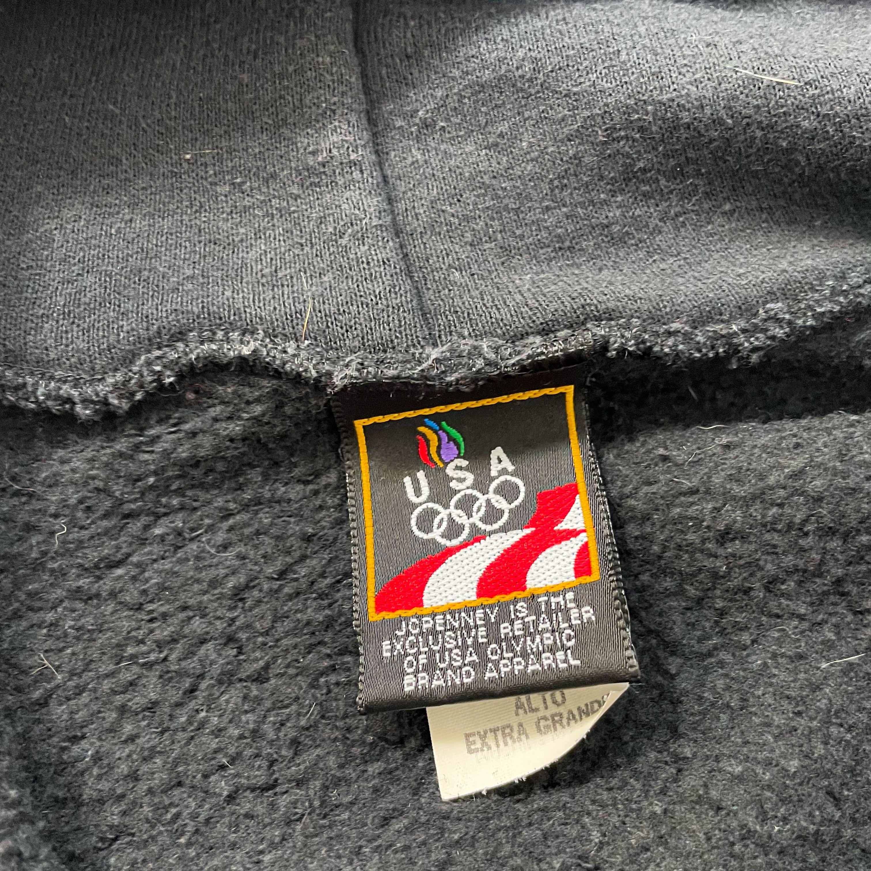 1990s " J.C.Penney " black zipup sweat parka . made in usa . size xlarge-tall.
