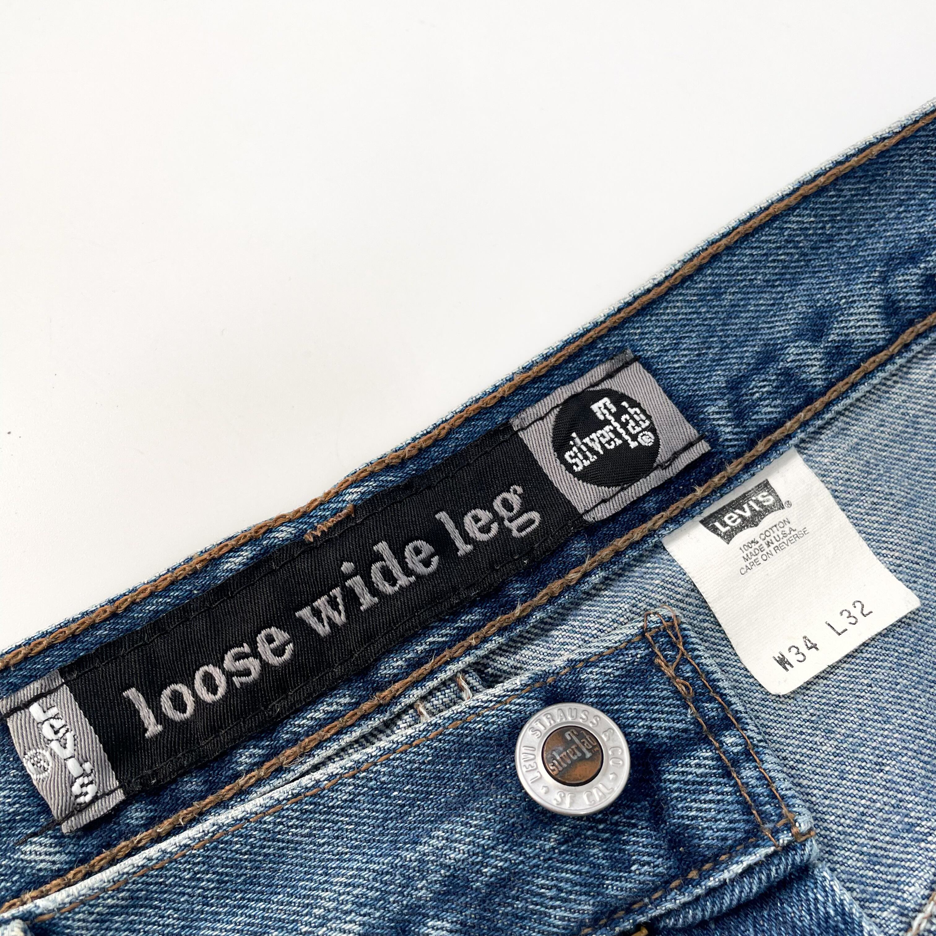 1990s " Levi's SilverTab / loose wide leg " denim straight pants . made in usa . size 34×32.
