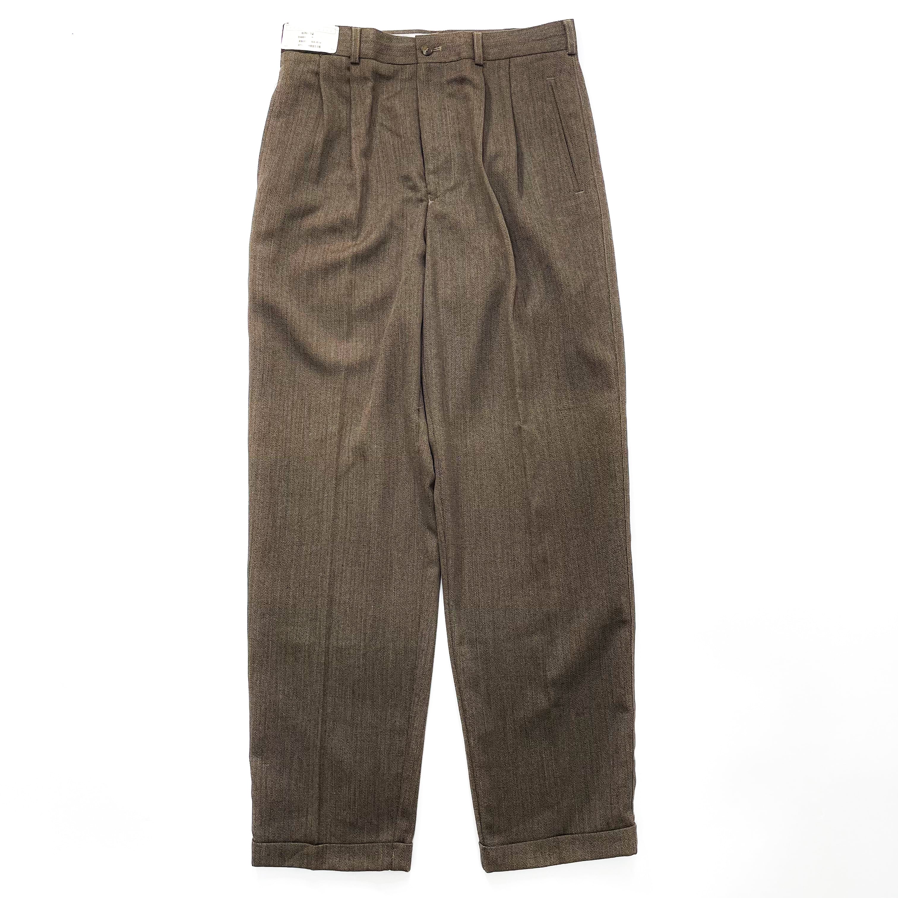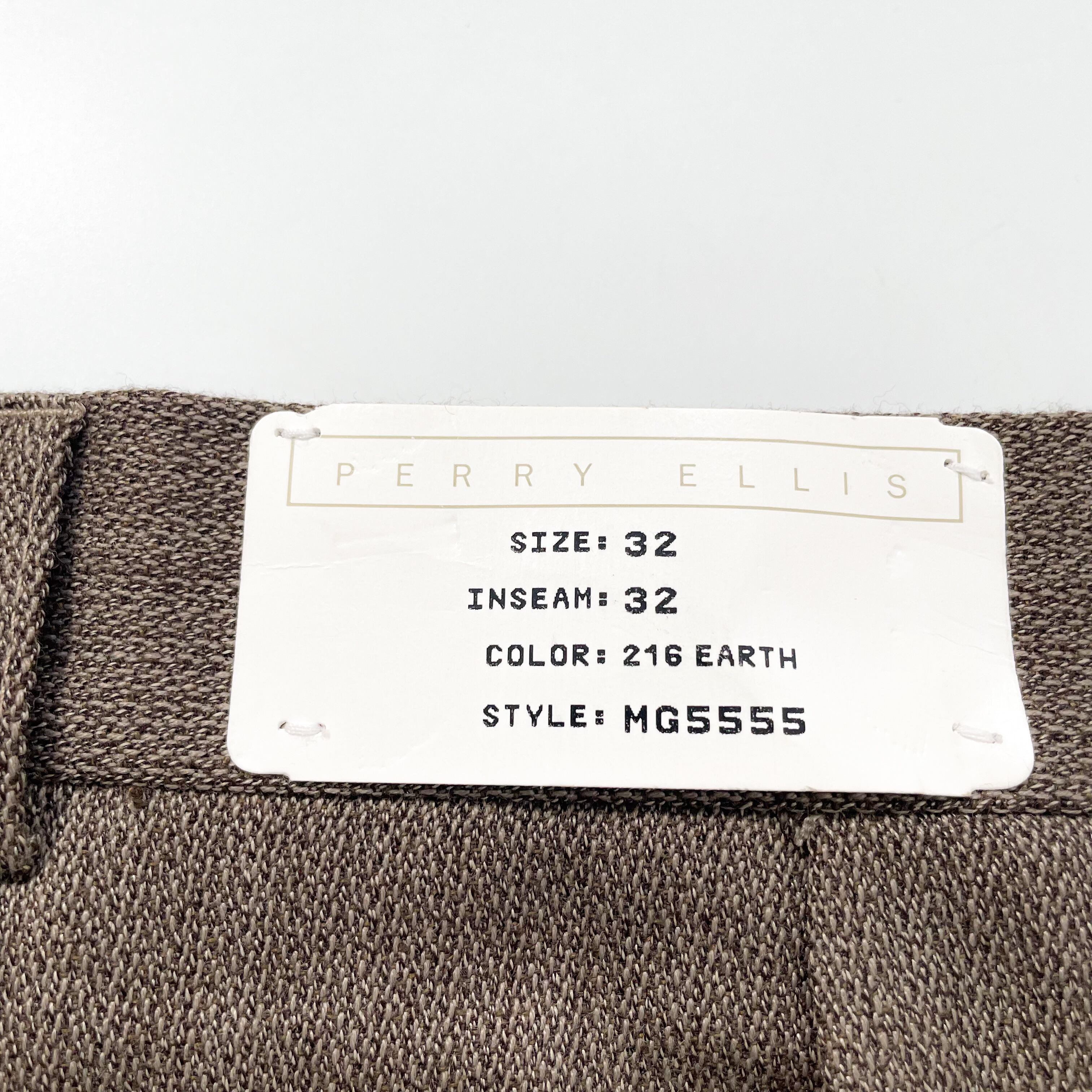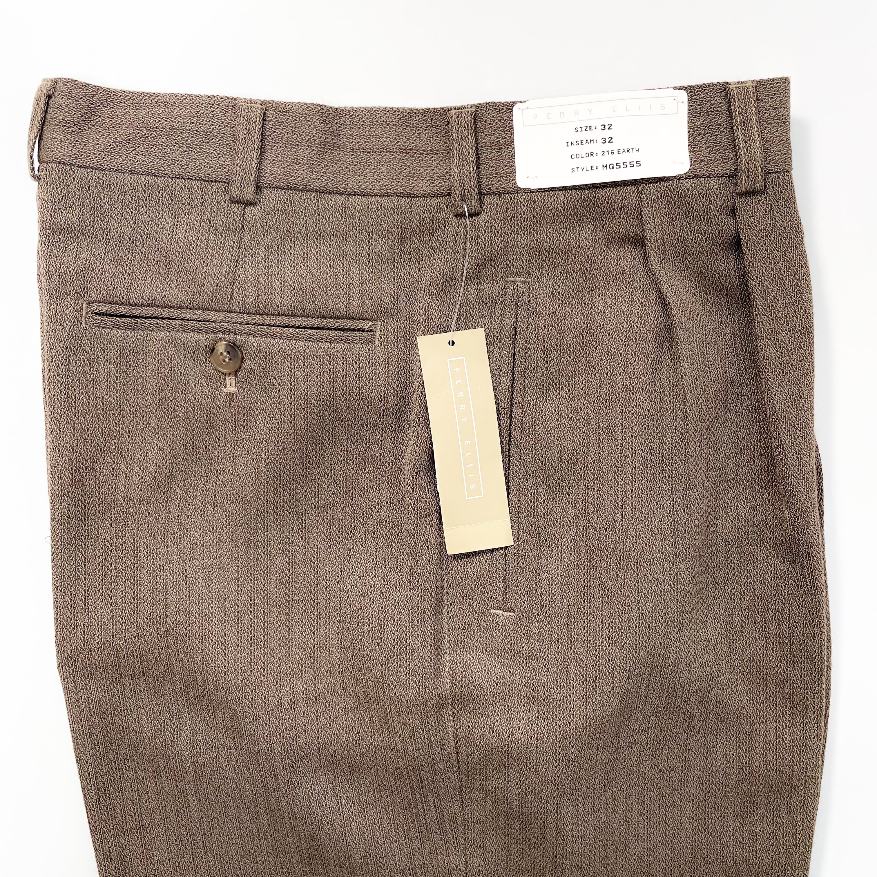 dead stock 1980s " Perry ellis " brown poly rayon two tuck slacks . size 32×32.