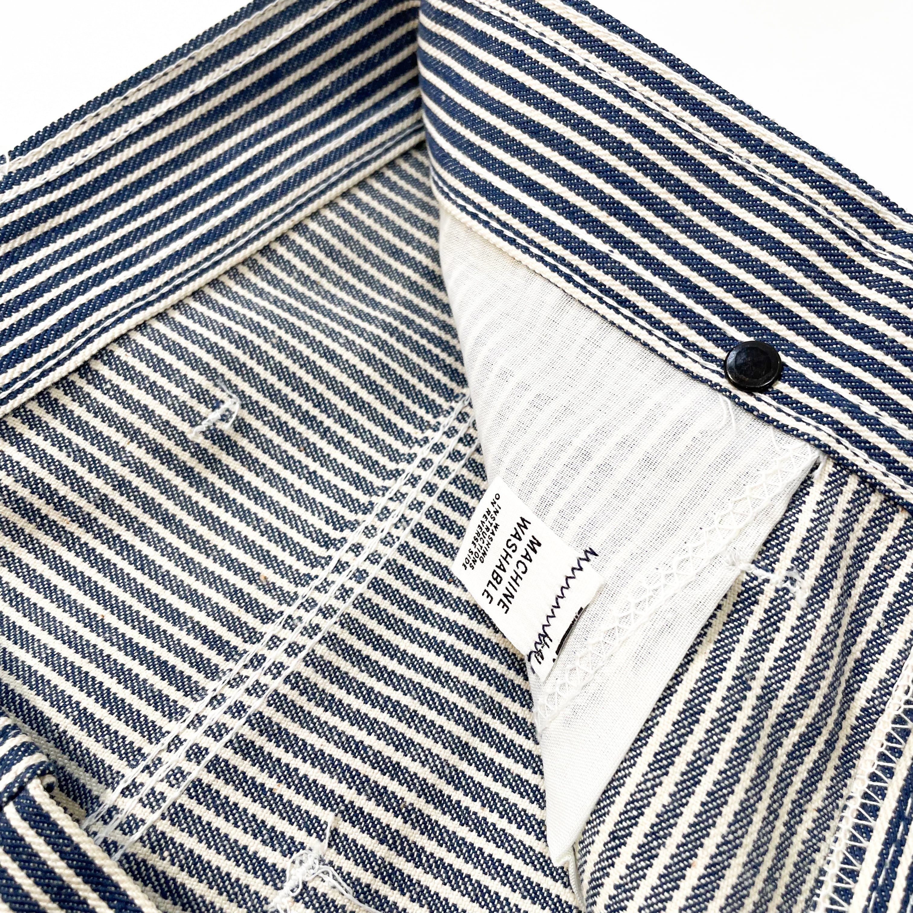 dead stock 1980s hickory stripe cotton painter pants . made in usa . size 33×29.