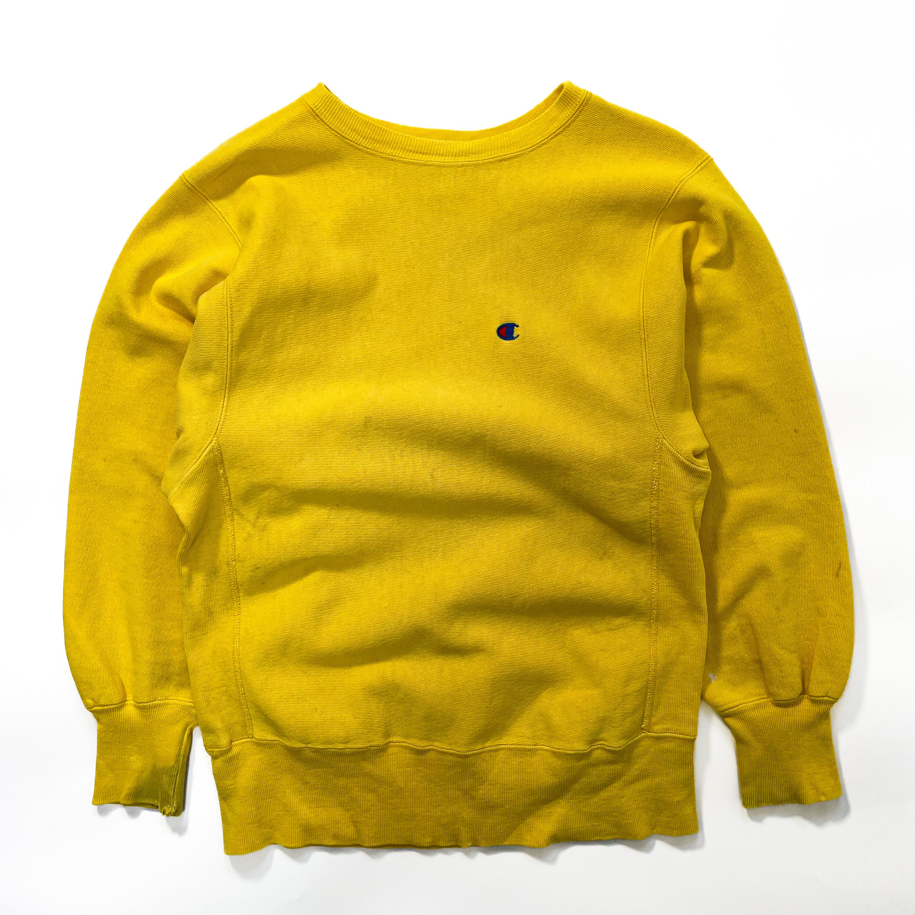 1990s " Champion " yellow reverse weave sweat . made in usa . size medium .