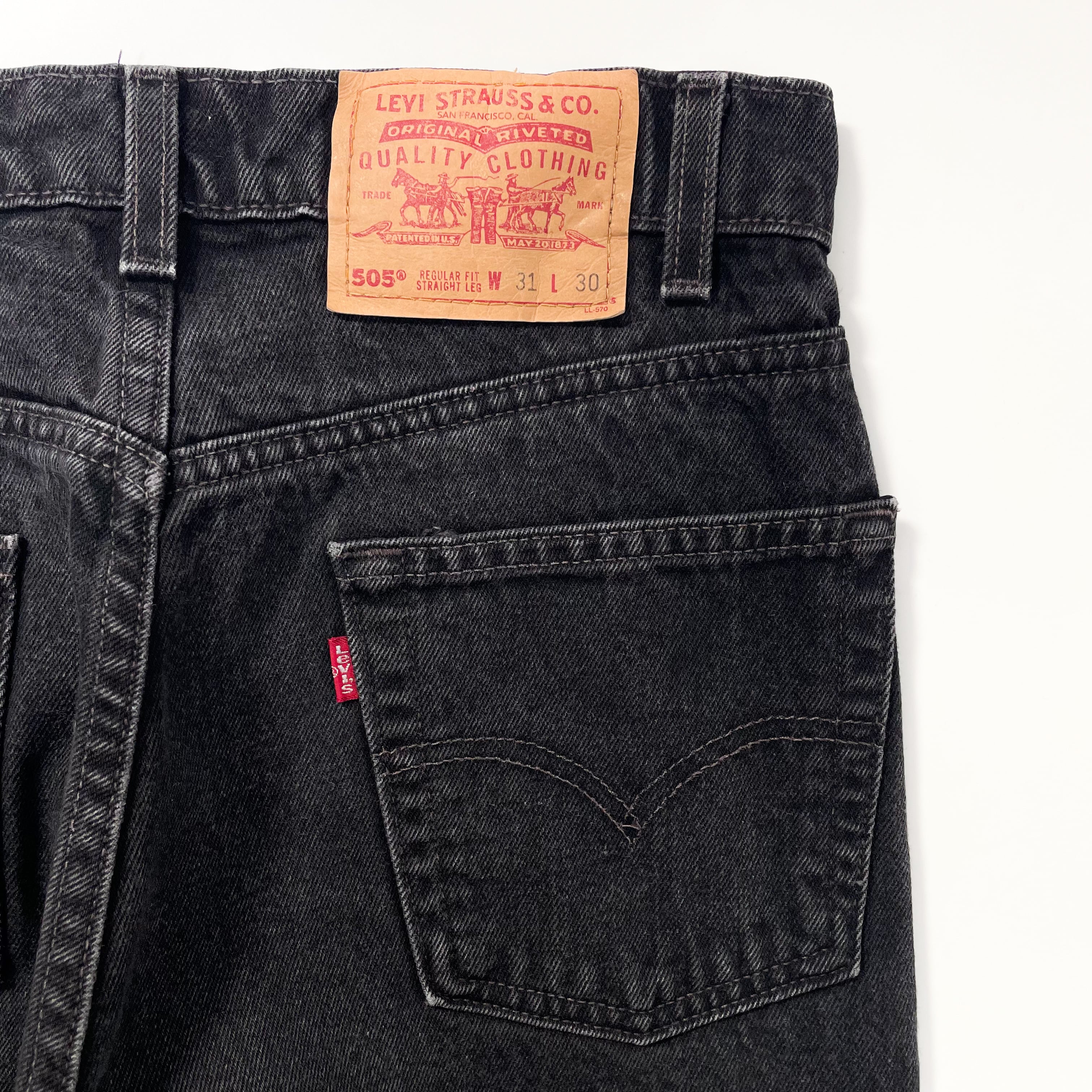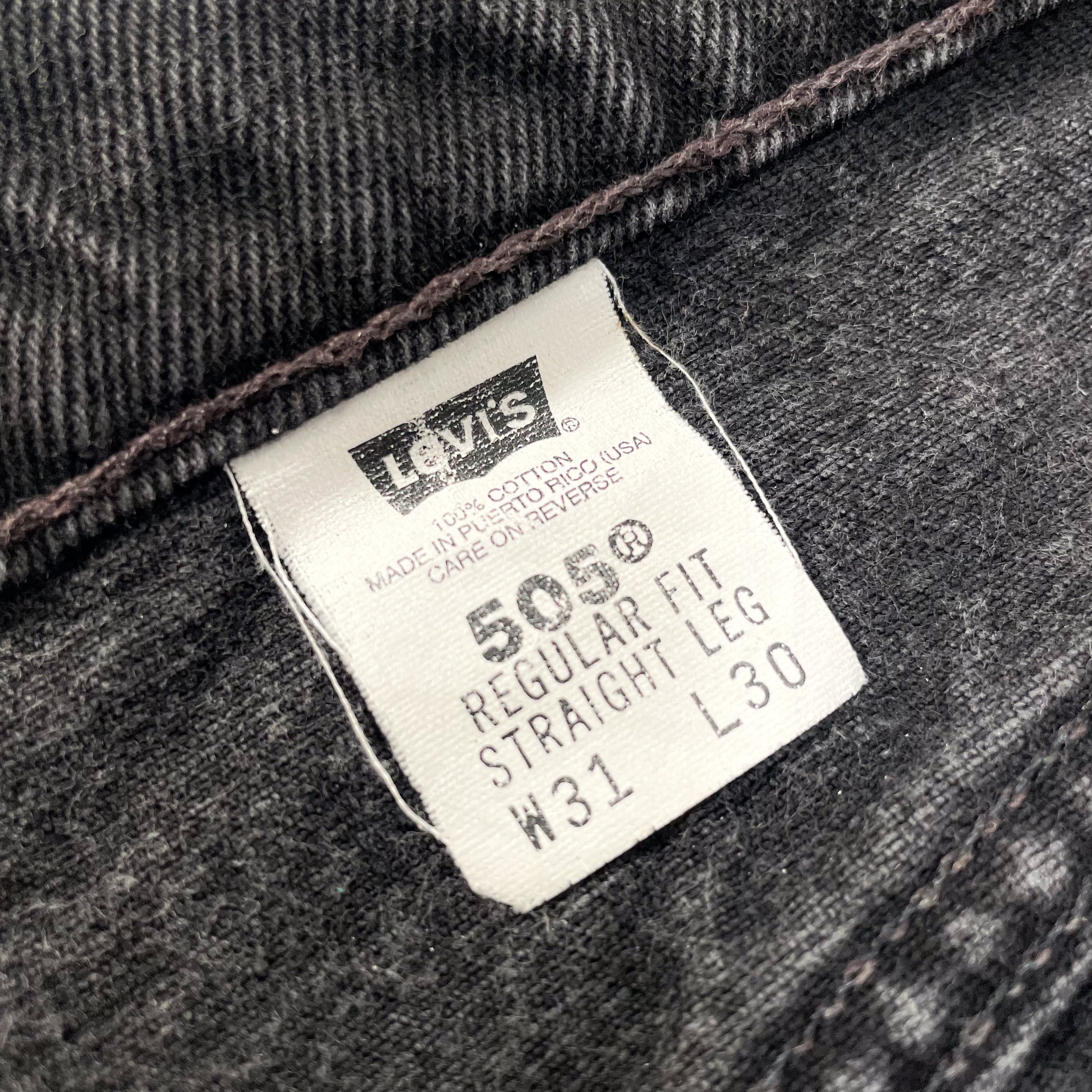 1990s " Levi's 505 " black denim pants . made in usa . size 31×30.