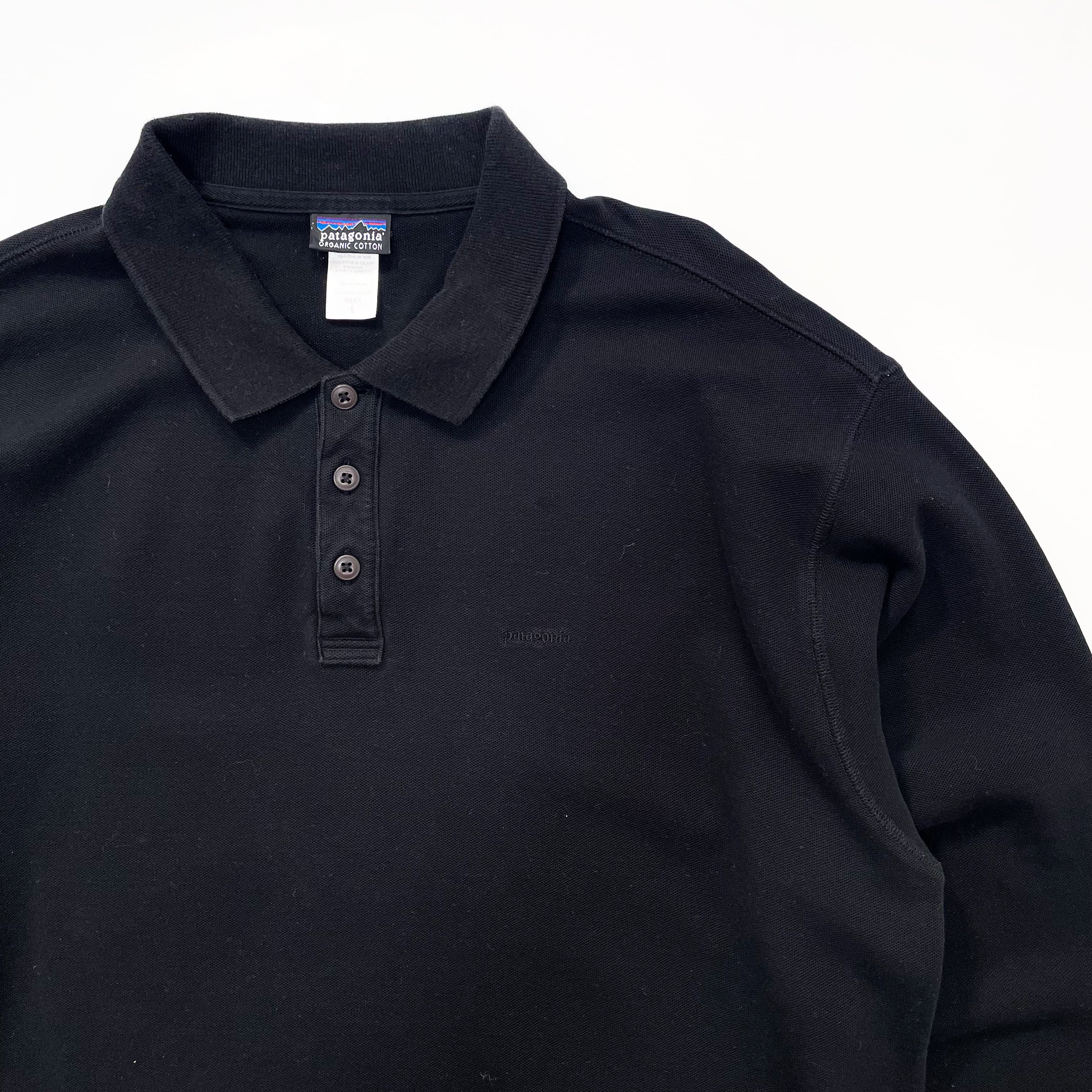 2000s " Patagonia " black organic cotton polo shirts . size large.