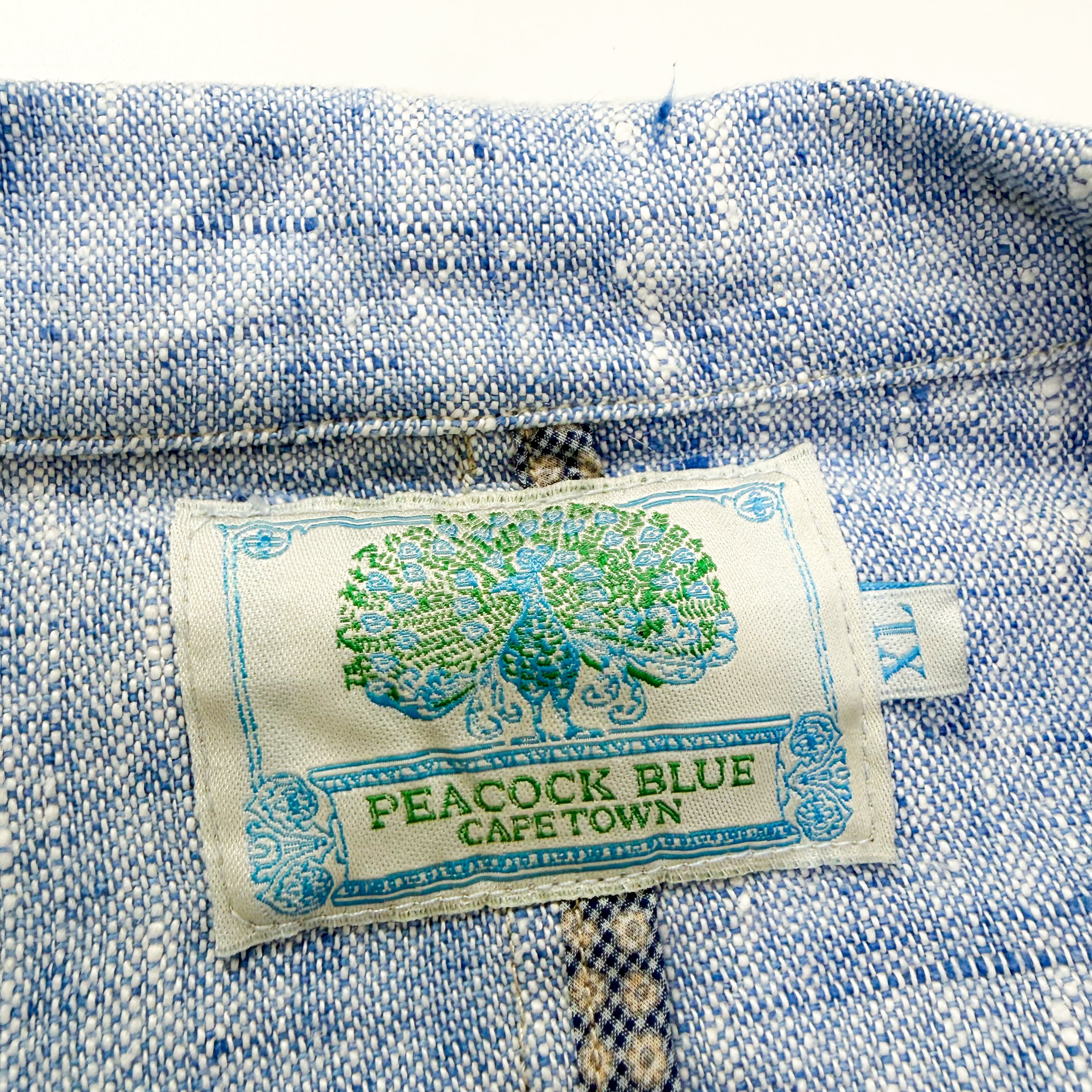2000s " Peacock Blue capetown " linen tailored jacket . size xlarge.