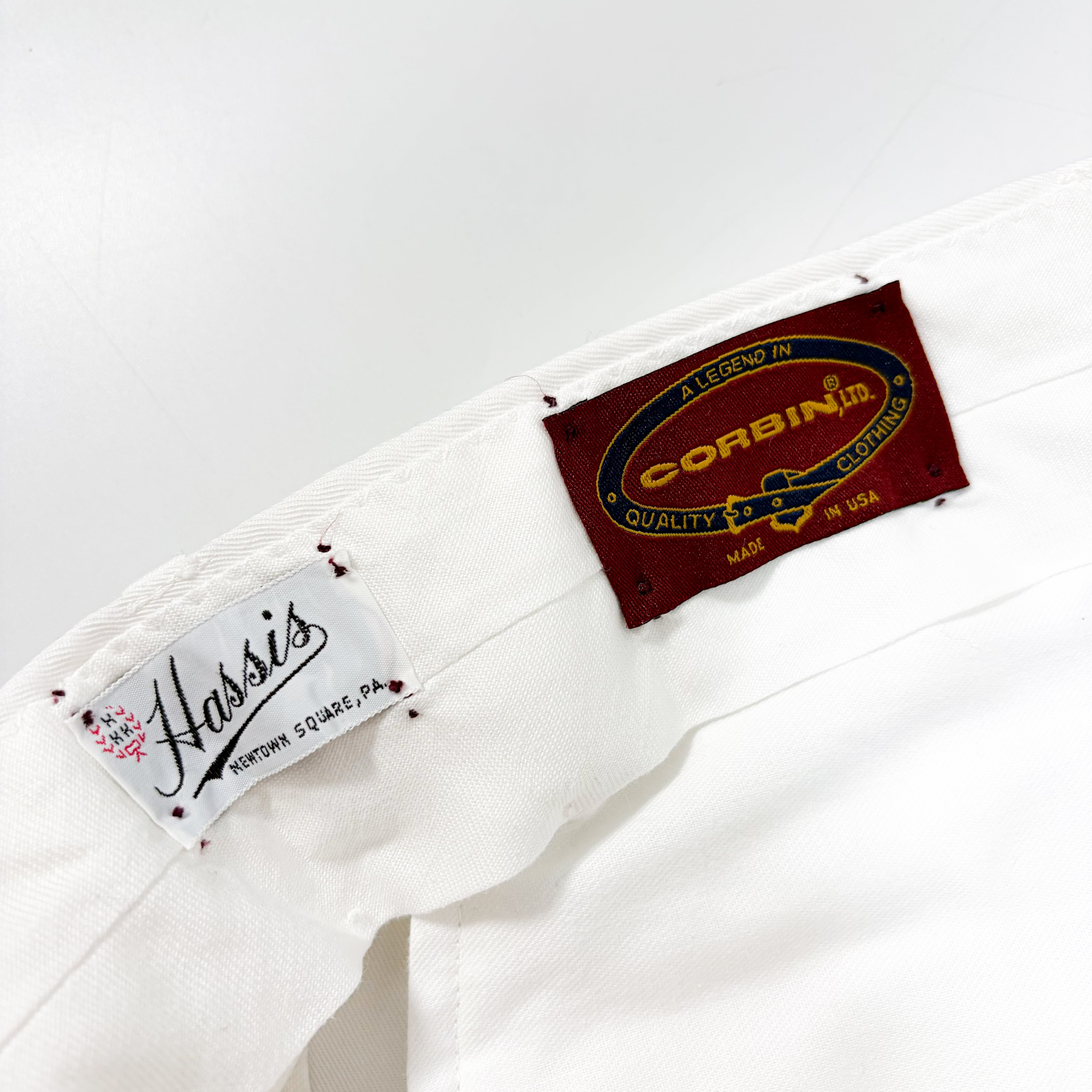1990s " Corbin / Hassis " white cotton two tuck slacks . made in usa . size 32×29.