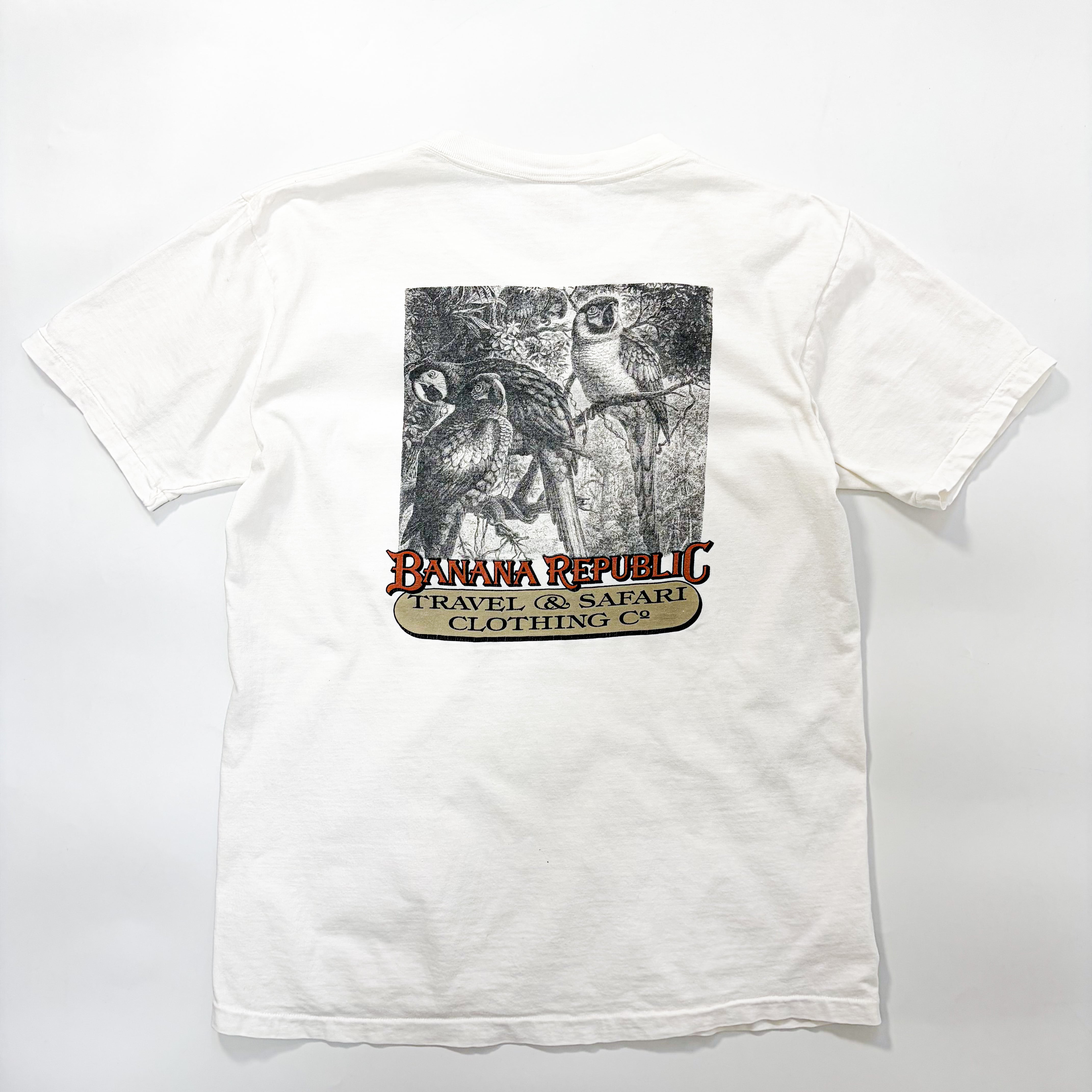 1980s " Banana Republic / Travel&Safari " cotton printed pocket t-shirts . made in usa . size large.
