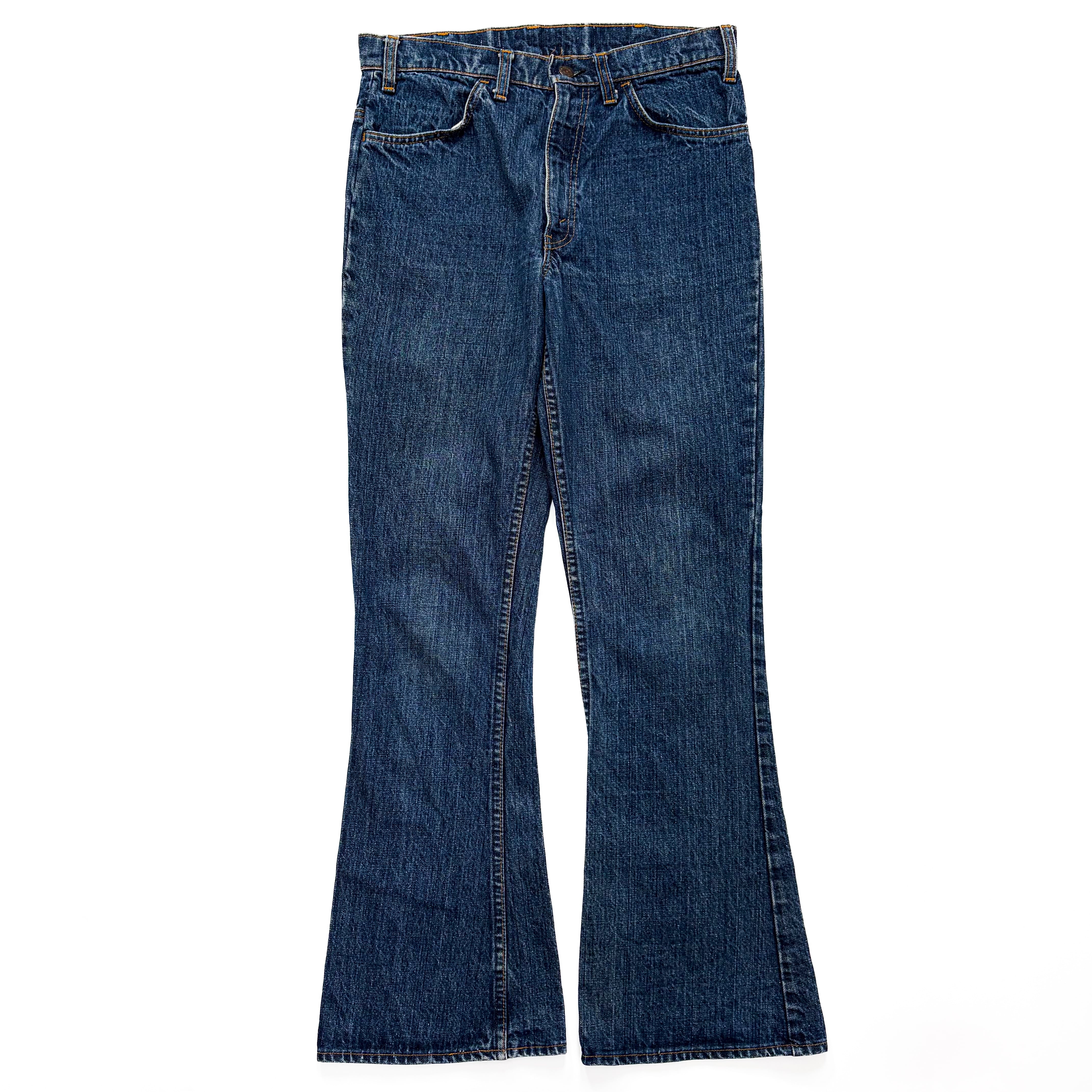 1970s " Levi's 646 " indigo denim bootscut pants . made in usa. size 33×32.