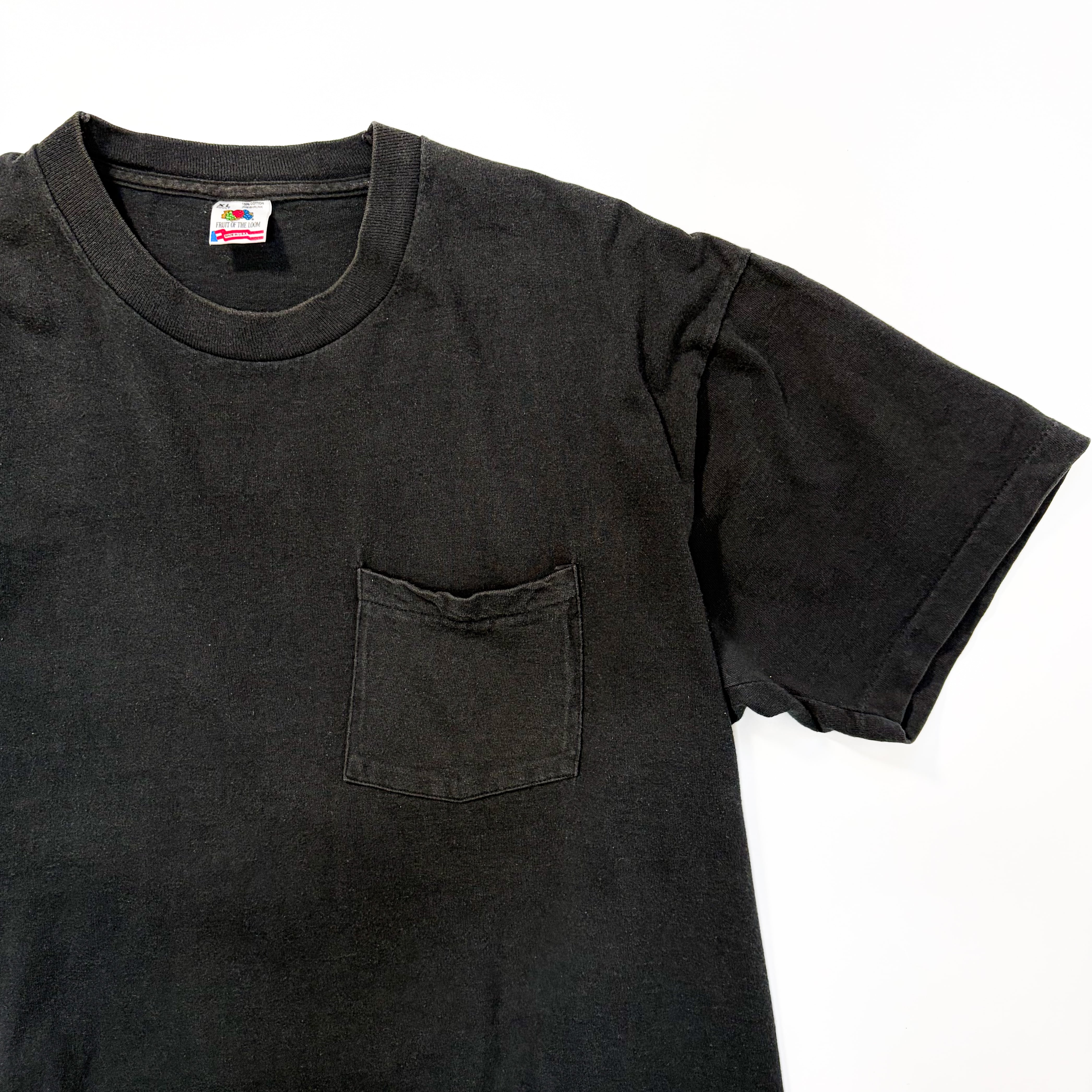 1990s " Fruit of the loom " black cotton pocket t-shirts . made in usa . size xlarge.