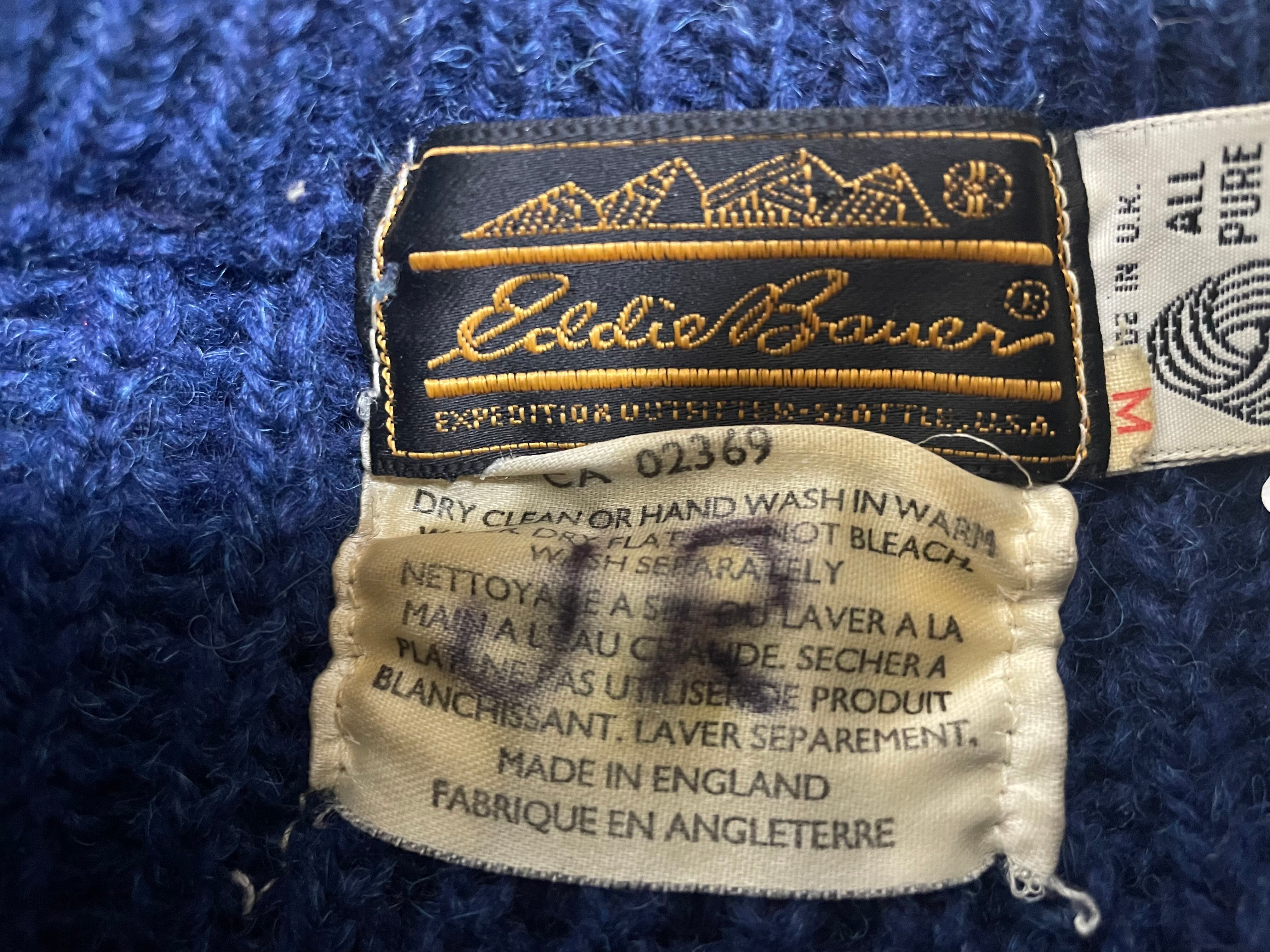 1970s " eddie bauer " wool rib knit . made in UK . size m .