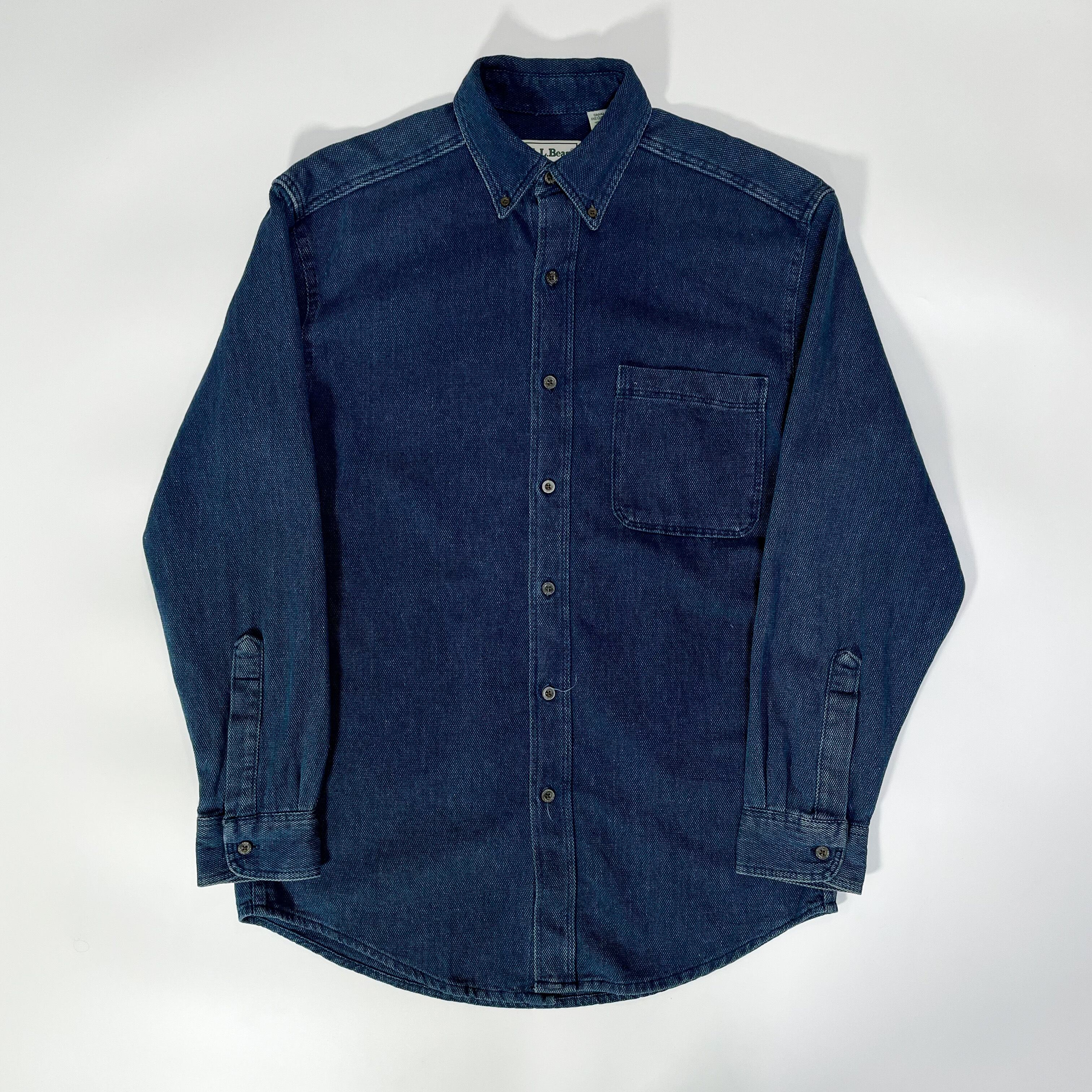 1990s " L.L.bean " indigo kanoko cotton BD shirts . made in usa . size small