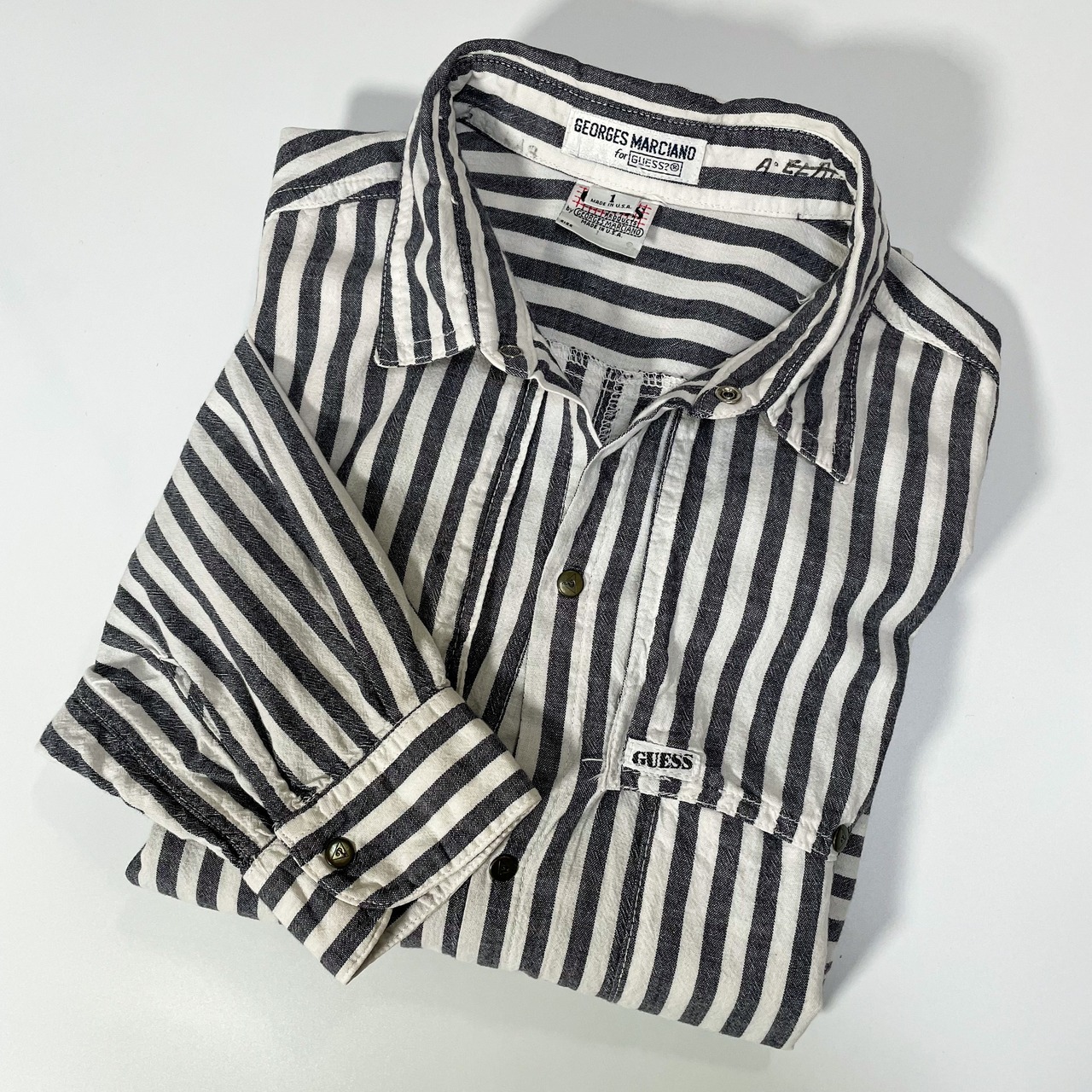 1980s " guess " stripe cotton design shirts . made in usa . size 1(about m)