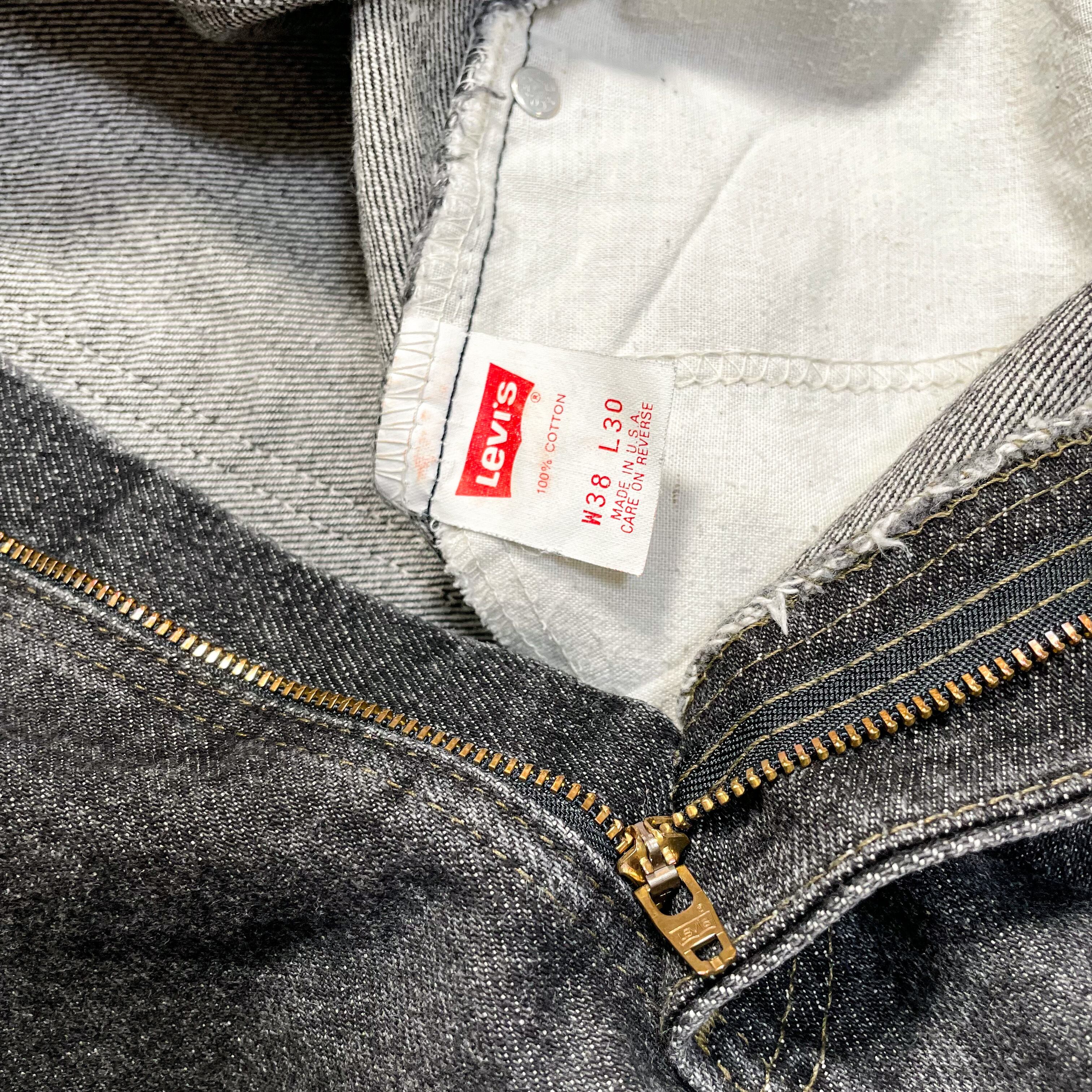 1990s " Levi's 505 " original black denim pants . made in usa . size 38×30 .
