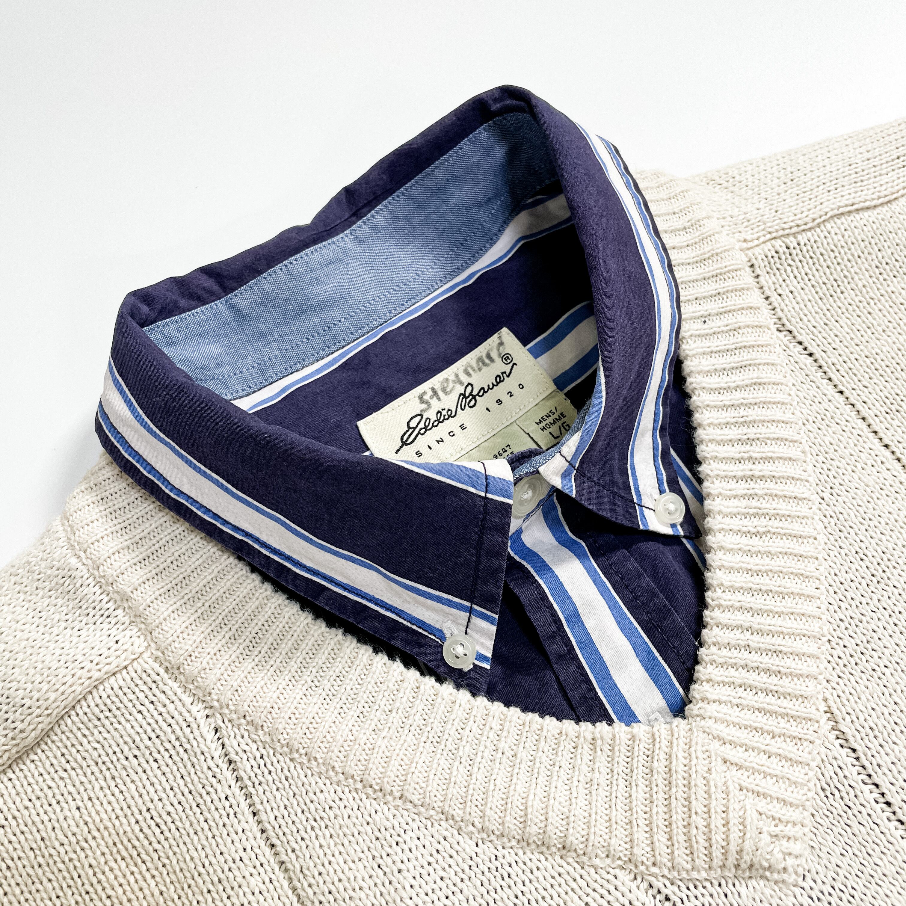 1990s " Eddie bauer " stripe cotton BD shirts . size large .