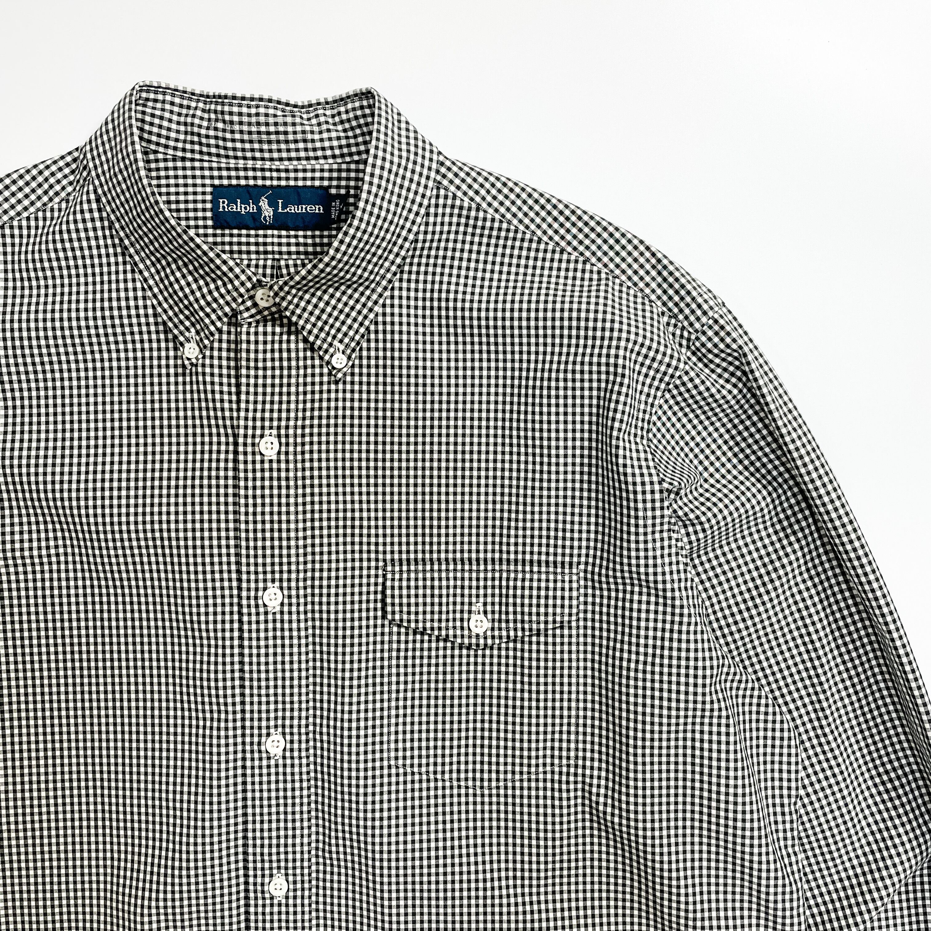 1990s " Ralph lauren " old style gingham cotton BD shirts . size xlarge .