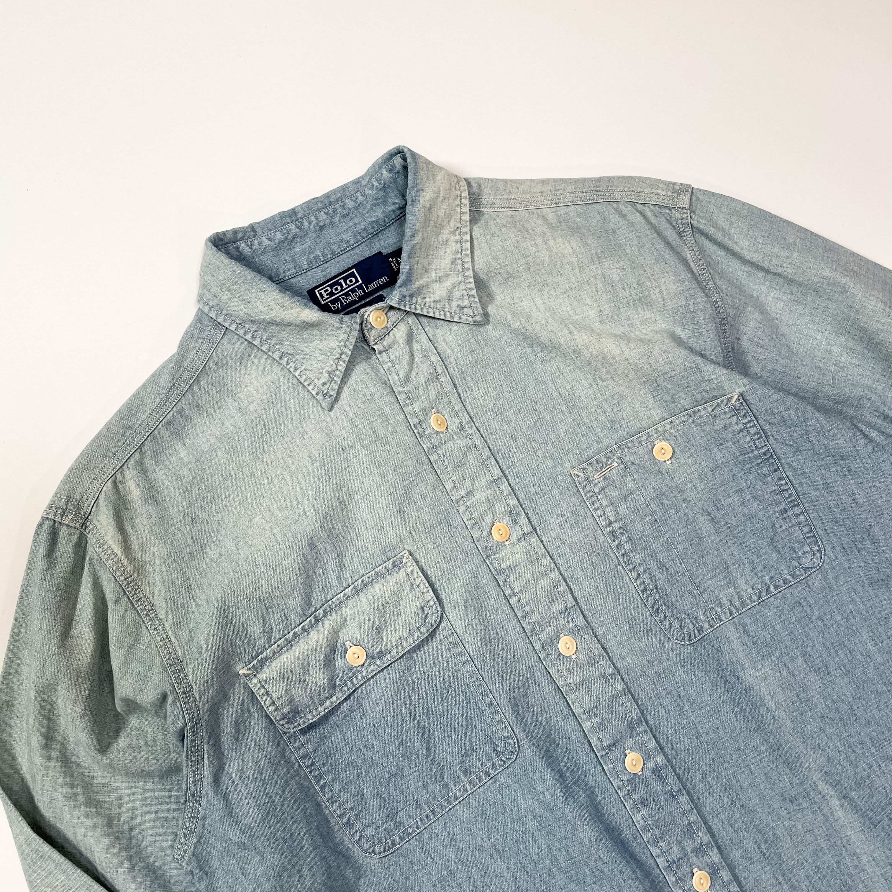 1990s " Polo ralph lauren " cotton chambray work shirts . size medium .