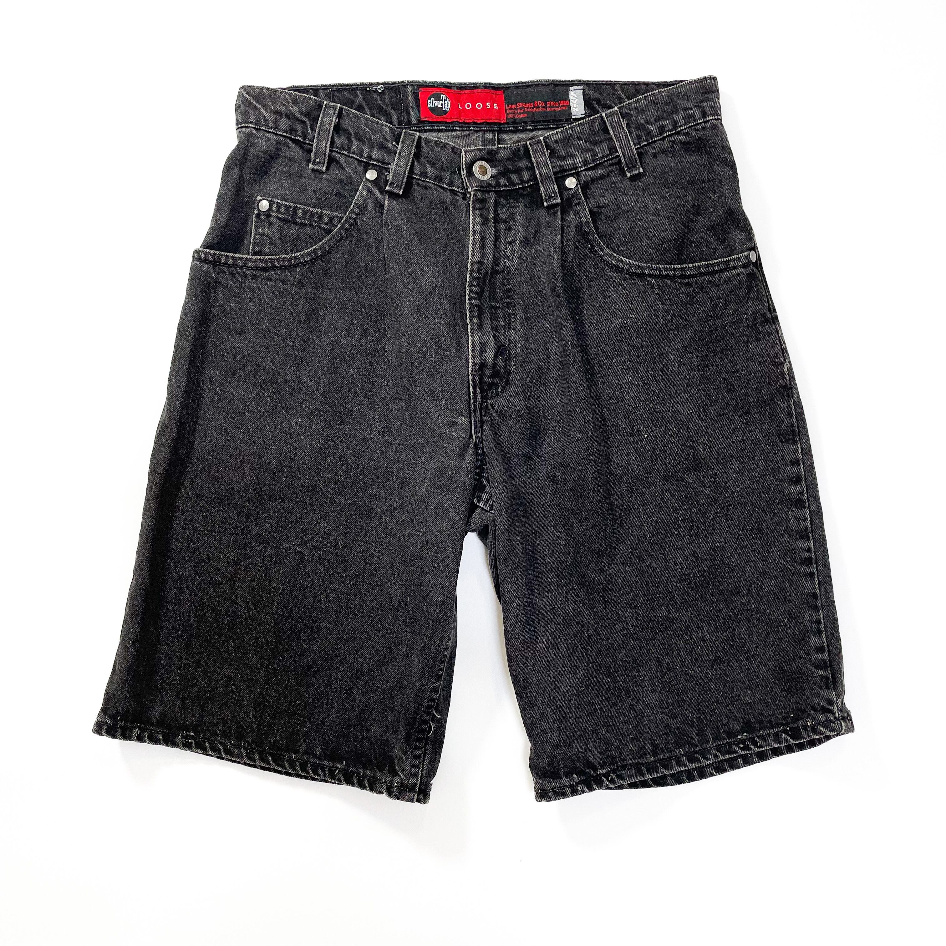 1990s " Levi's silver tab " black denim loose shorts . made in usa . size 32 .