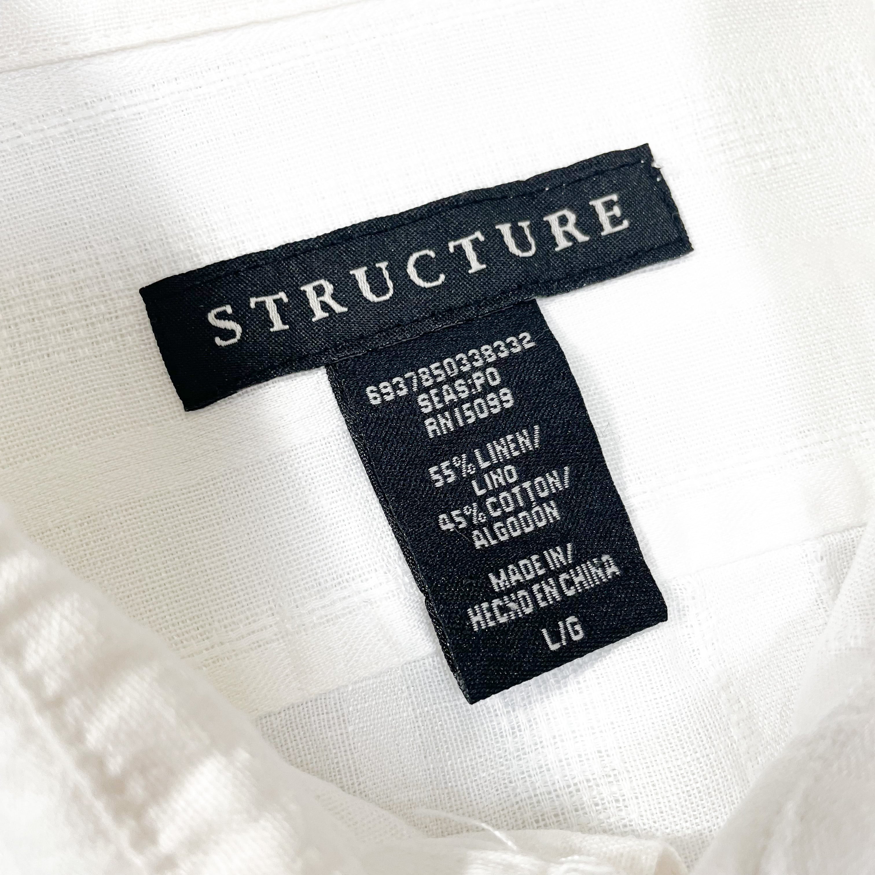 1990s " Structure " white linen cotton pullover shirts . size large .